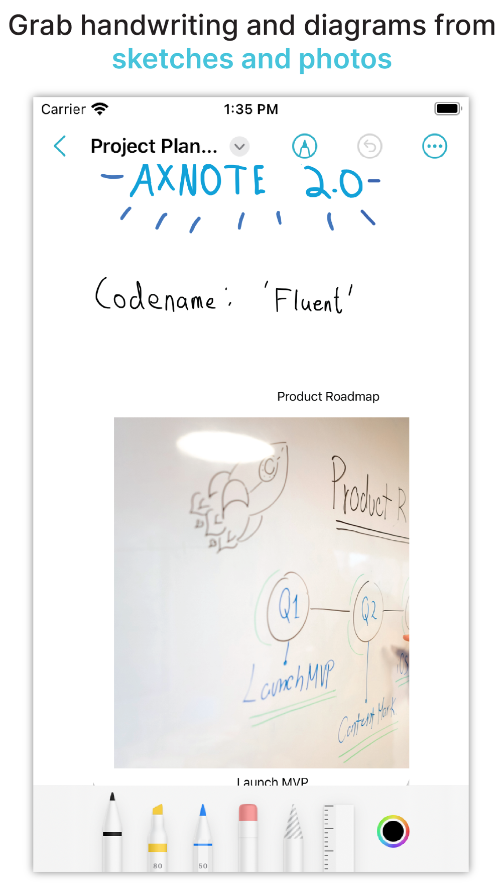 Magic Lens: Extract handwriting or text from photos and create text fields. AxNote can also detect the major object of photos, like a piece of paper or a diagram, and automatically crop the photo to its dimensions.