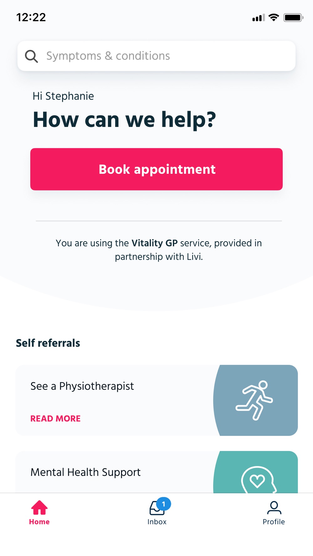 Our Vitality GP app is a fast, simple feature of your health plan. In a few taps, it lets you set up private GP video or telephone consultations.