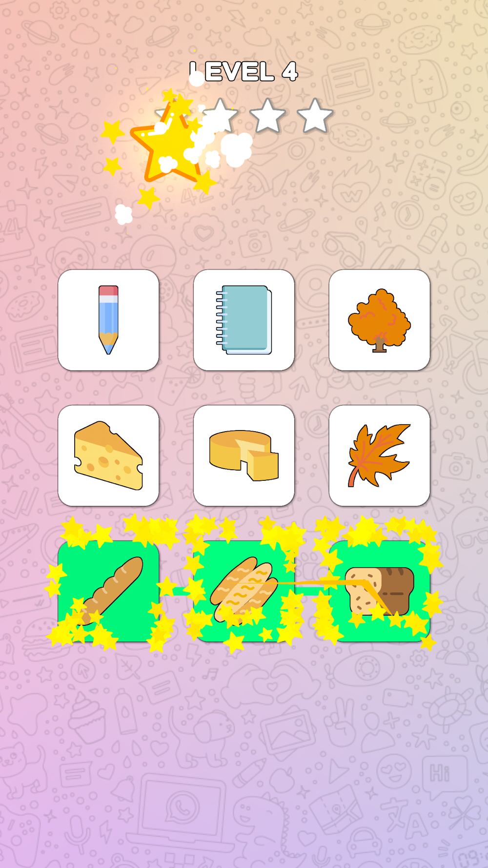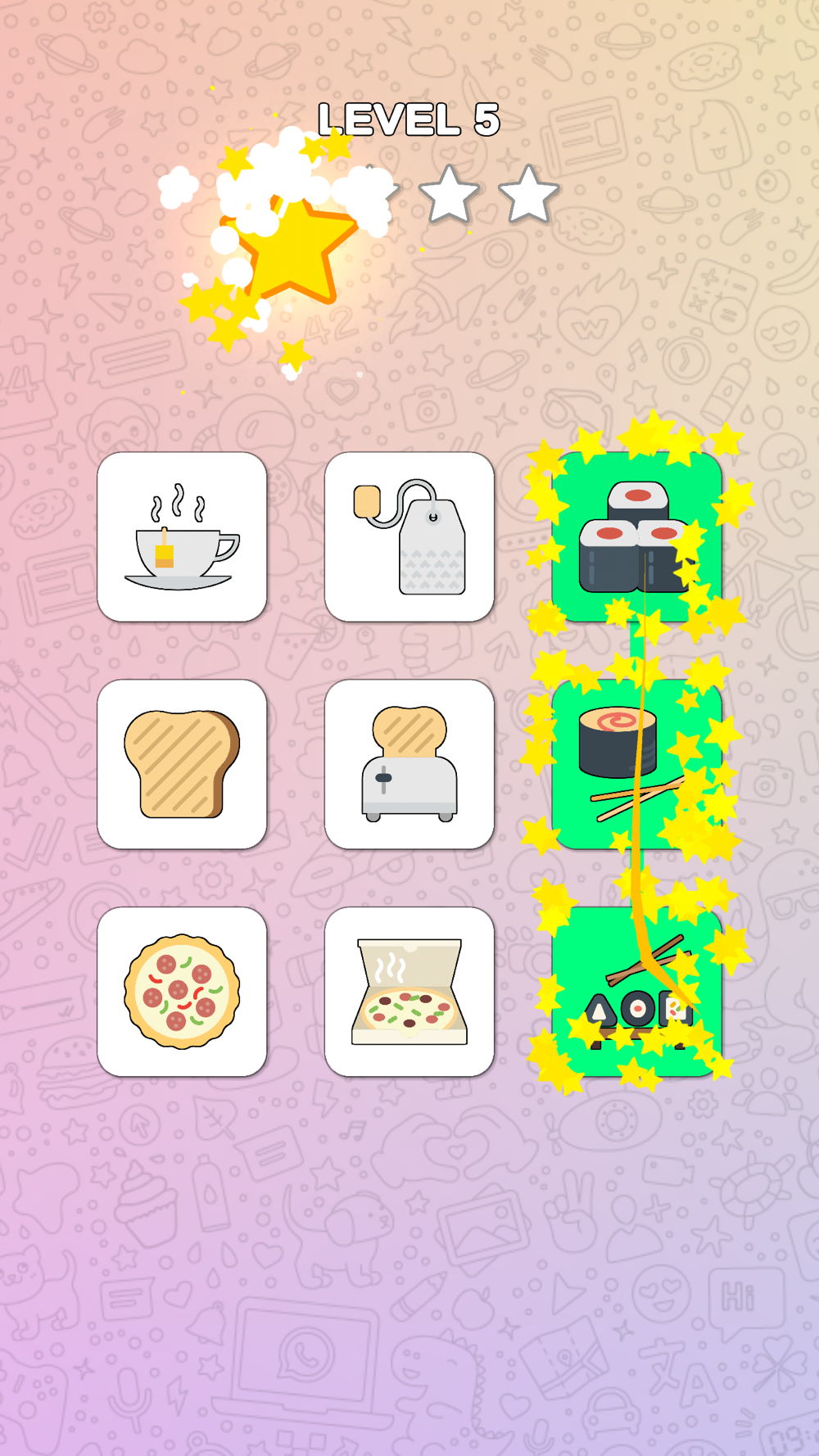 Find similar pictures and connect them! Pictures can be similar in color, shape, meaning.