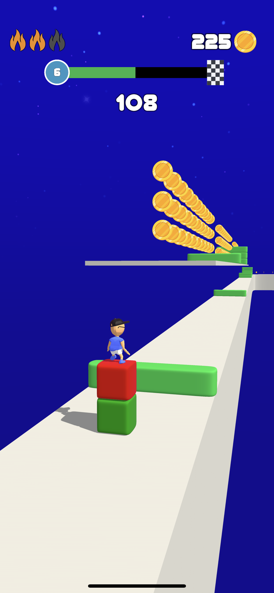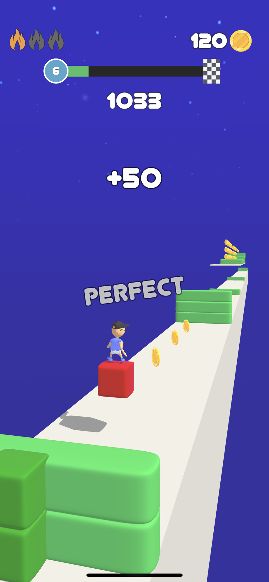 Tap to stack blocks to go over barriers. Pass through each barrier with only the red block to earn Perfect Score bonuses.