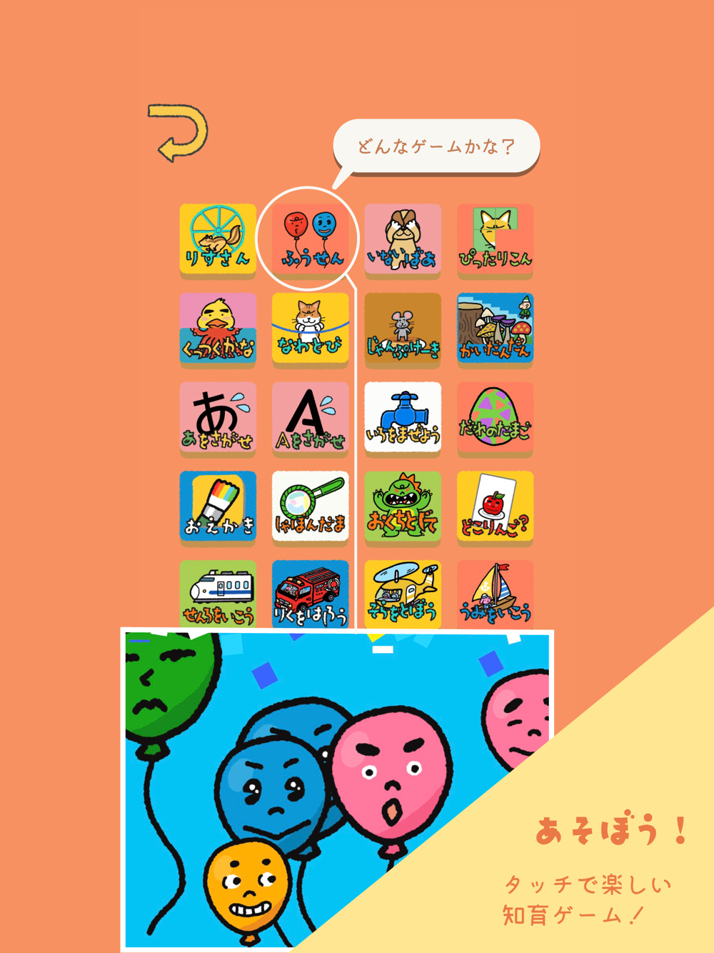 タッチで簡単に楽しめる知育ゲーム24種。お子さまひとりでも、ご家族でも一緒に遊ぶことができます。アップデートで更に楽しいゲームや、プレイ時間を制限するアラーム機能を追加いたします。