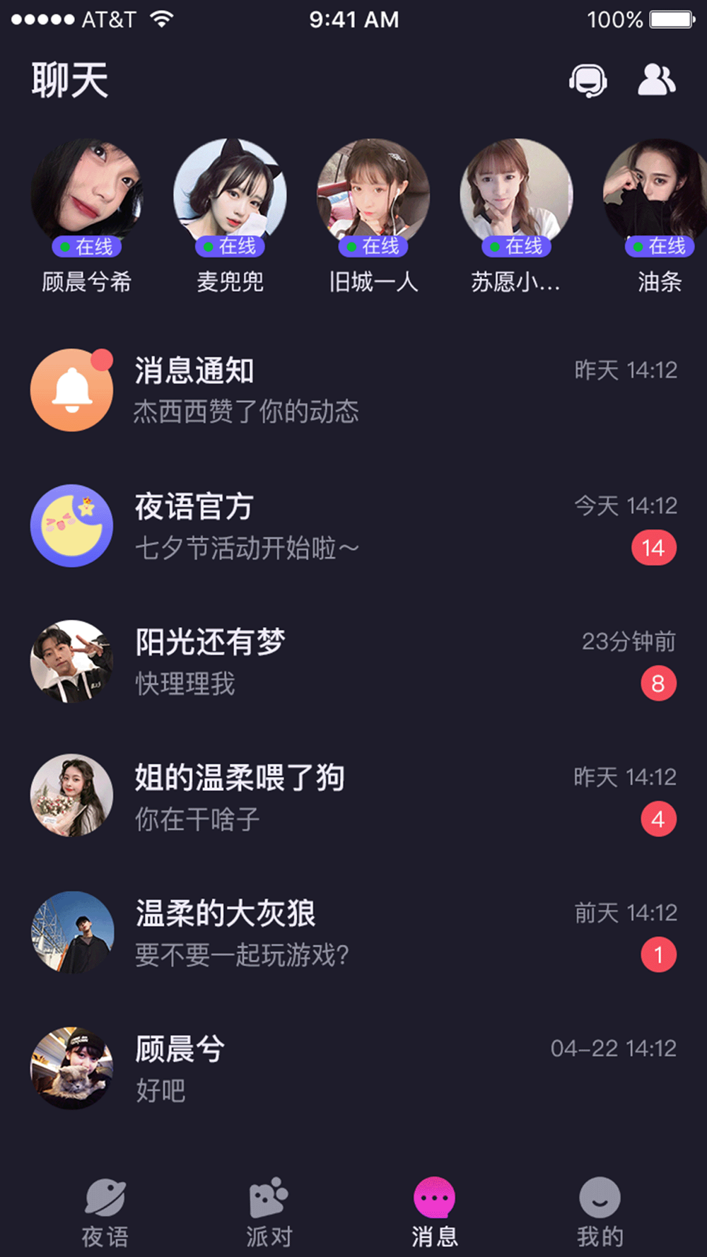 是一款多人语音互动交友聊天APP,派对交友多人聊天室超多玩法,动态广场随时随地分享新鲜事,推荐附近好友畅聊,个性主页了解从这里开始~