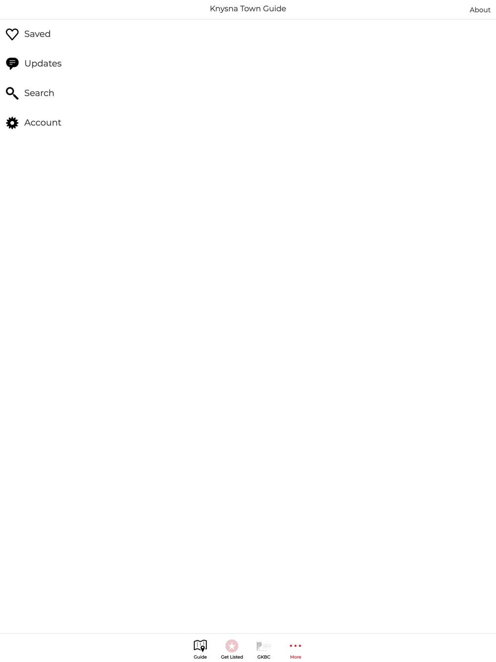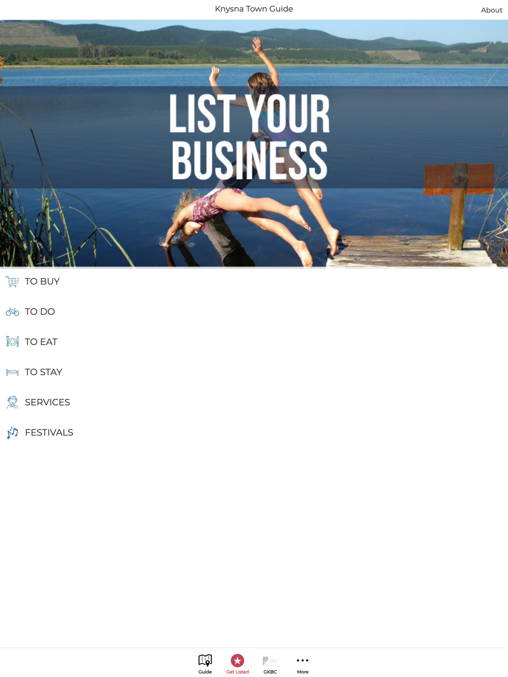 The Knysna Town Guide is a one stop business listing. Search app off contact details of businesses in Knysna. The Mobile App has listings form all industries ranging from Tourism to Personal Services and emergency contact numbers.
