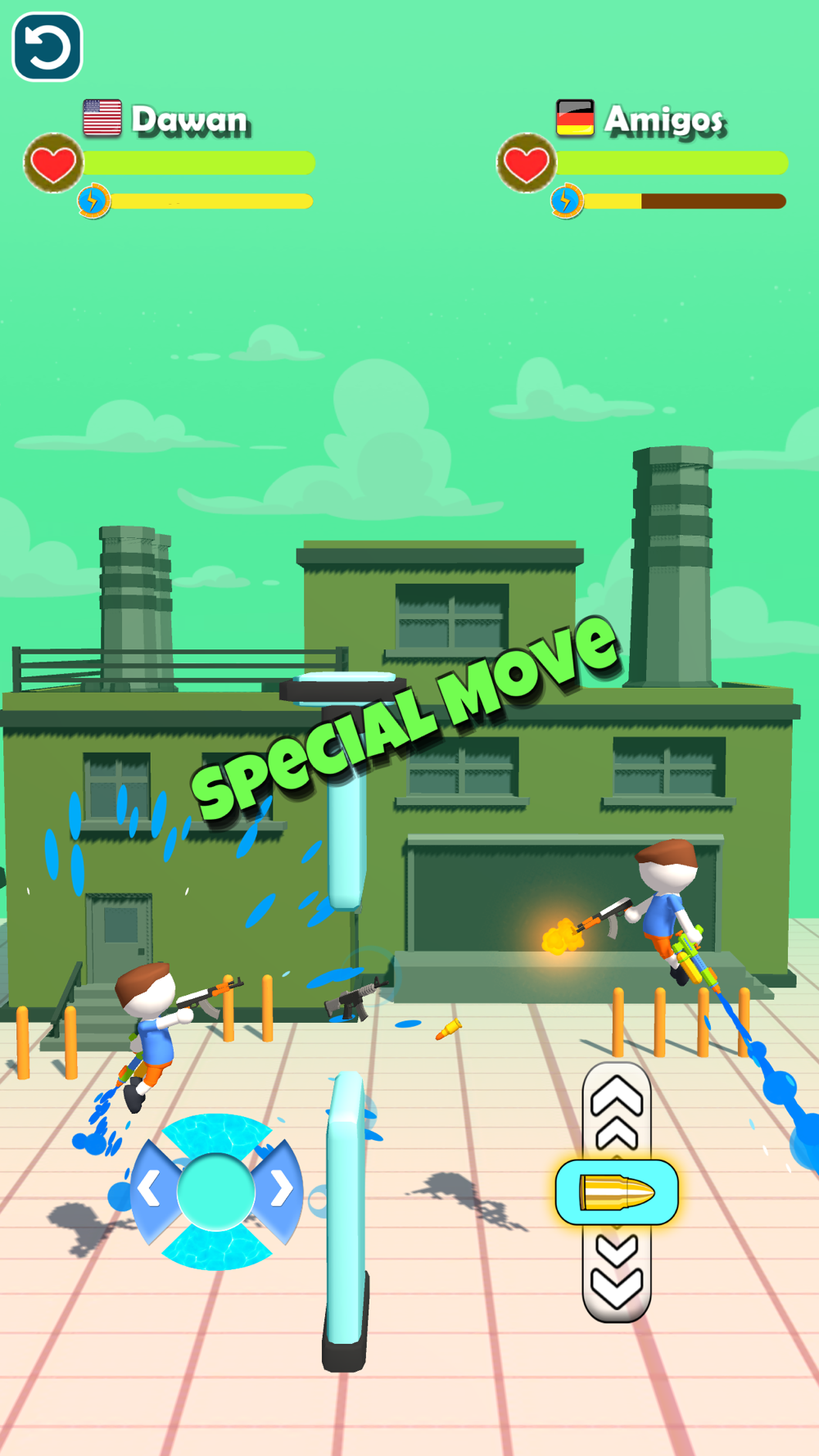 Use the Soaker to go up and hit your opponent with the Striker. Make sure you angle yourself well to take that perfect aim! Empty your opponent’s life-span and win!