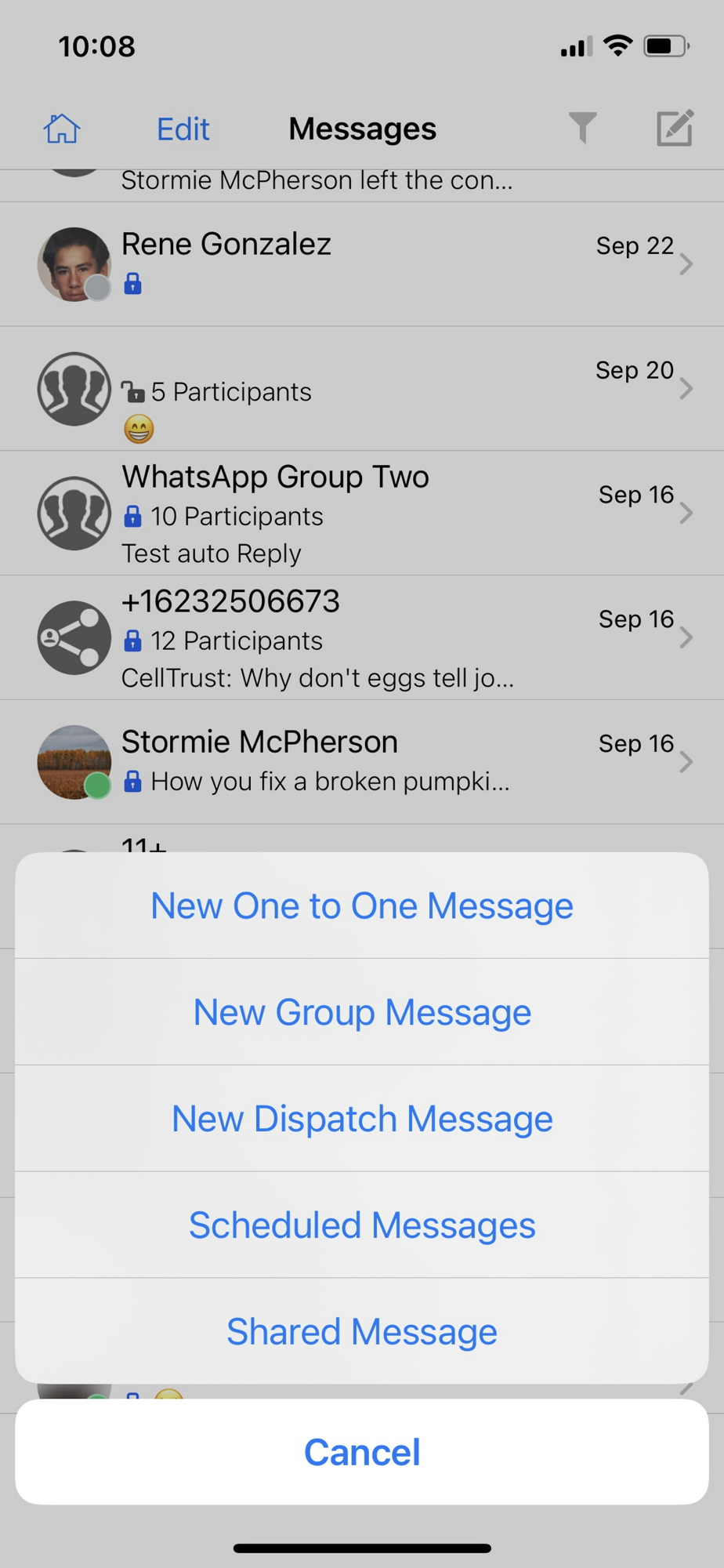 -Sync Favorites Contacts-Shared Message UI removed when not licensed -Import all device contacts option -WebUrl link share suggestion -Add short code support for standard contacts -Add an ability to start Shared Conversation from Group Details/Group list screen -Modify Conversation and Contact Group Subject validation -Add Phone and O365 contacts lookup when user manually adds phone number to Group/Dispatch conversation -Integration with MS Teams (Preview) -Make "Subject" field as optional for New Group/Dispatch conversation-Contacts Dial Full Extension: Pauses AccessCode and #-Allow user to copy MBN from profile screen-Performance, usability, and reliability fixes-IT Administrators see CellTrust article KA-01166 for release notes
