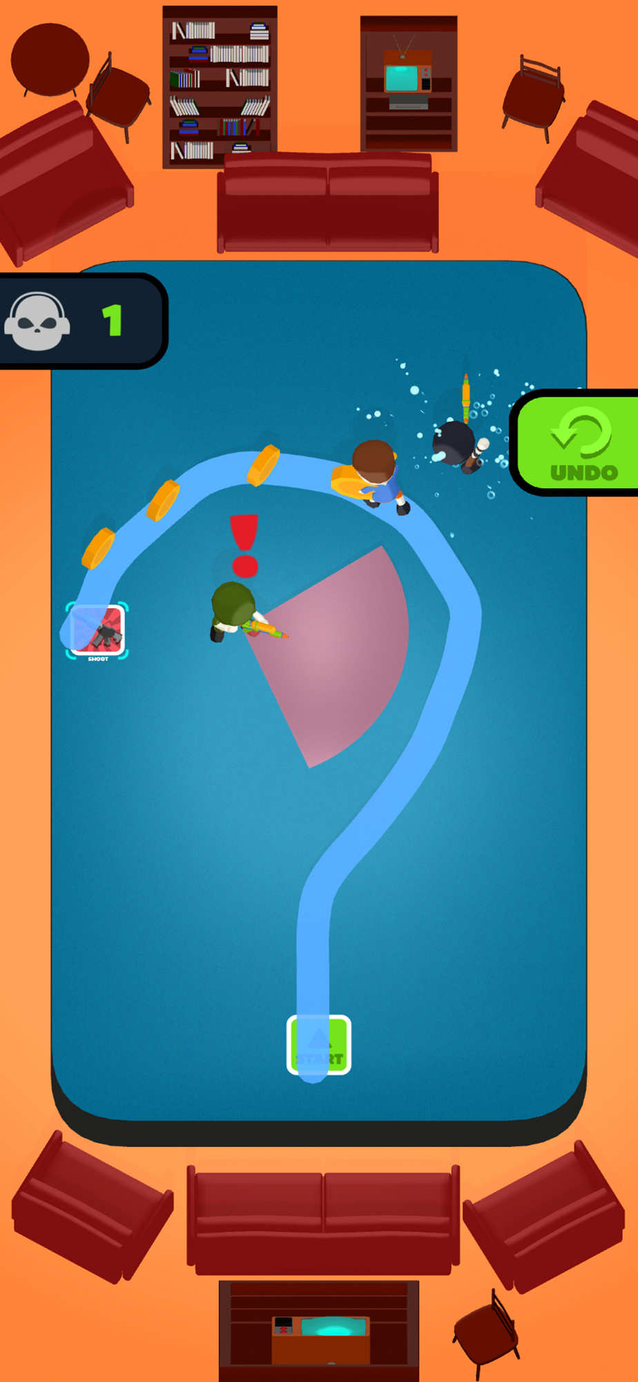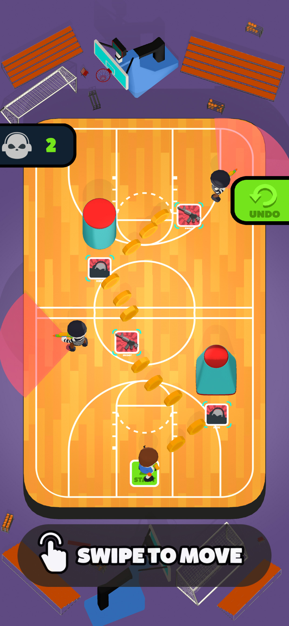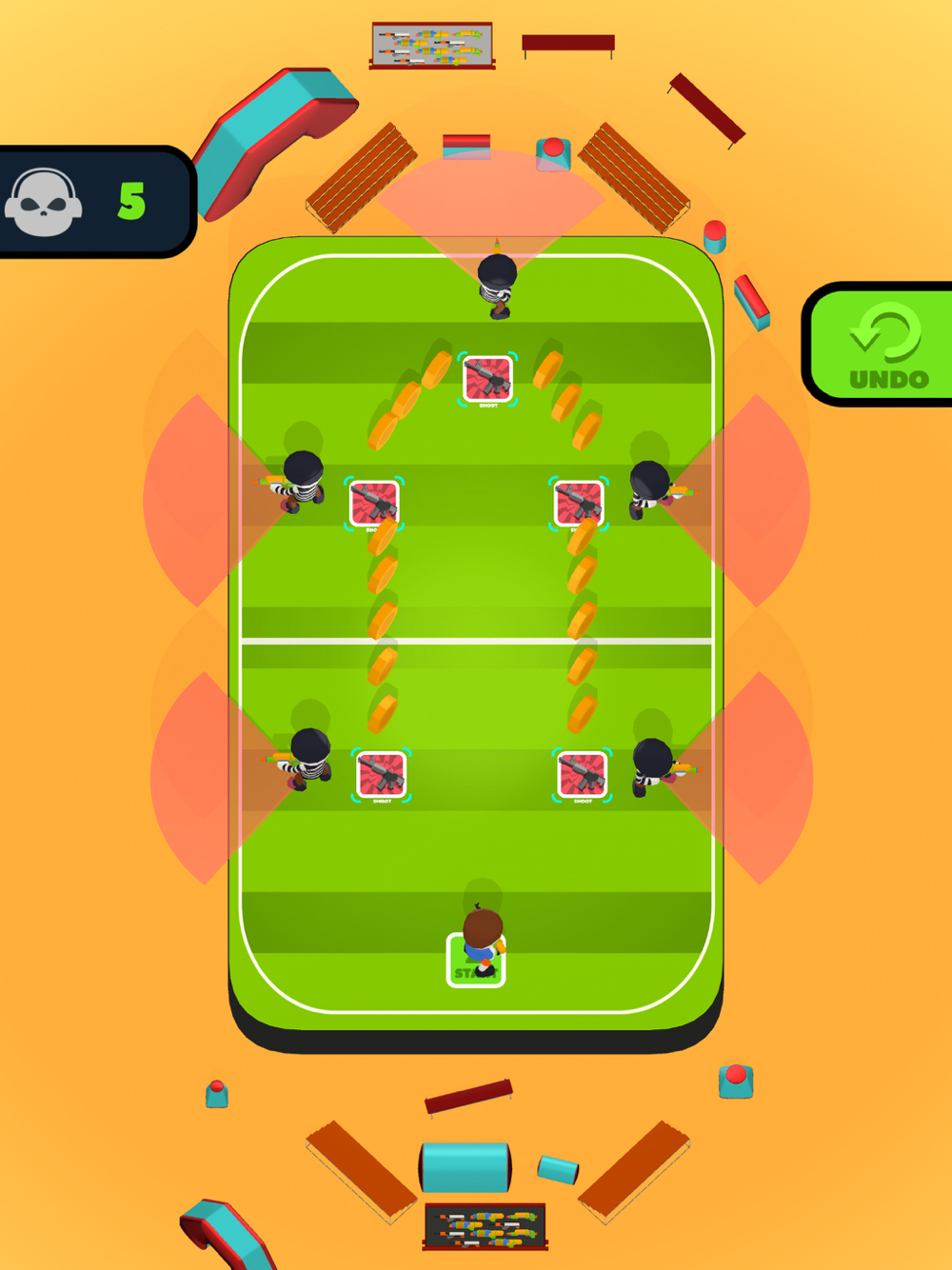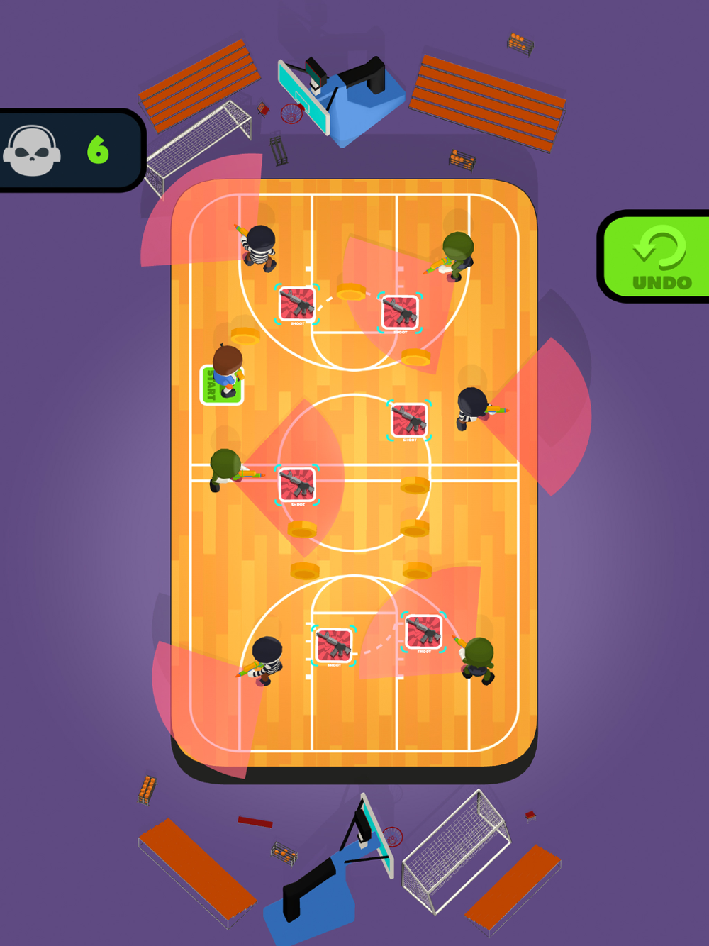 Draw a line with your finger and guide the character to action cases without being caught in the enemy field of view.