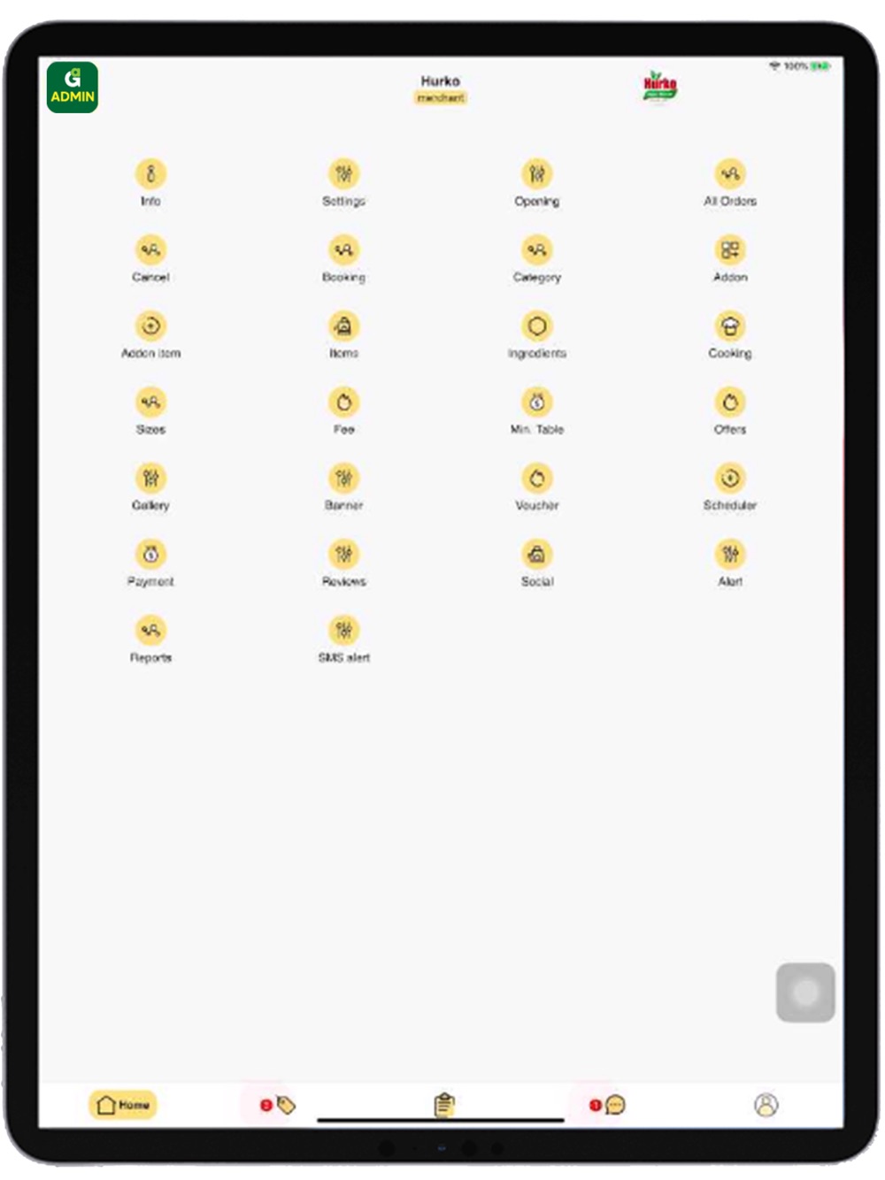* Ürün, Ürün Kategorisi ekleme, İşletmeyi Aç / Kapa gibi tüm ayarları özelleştirebilir