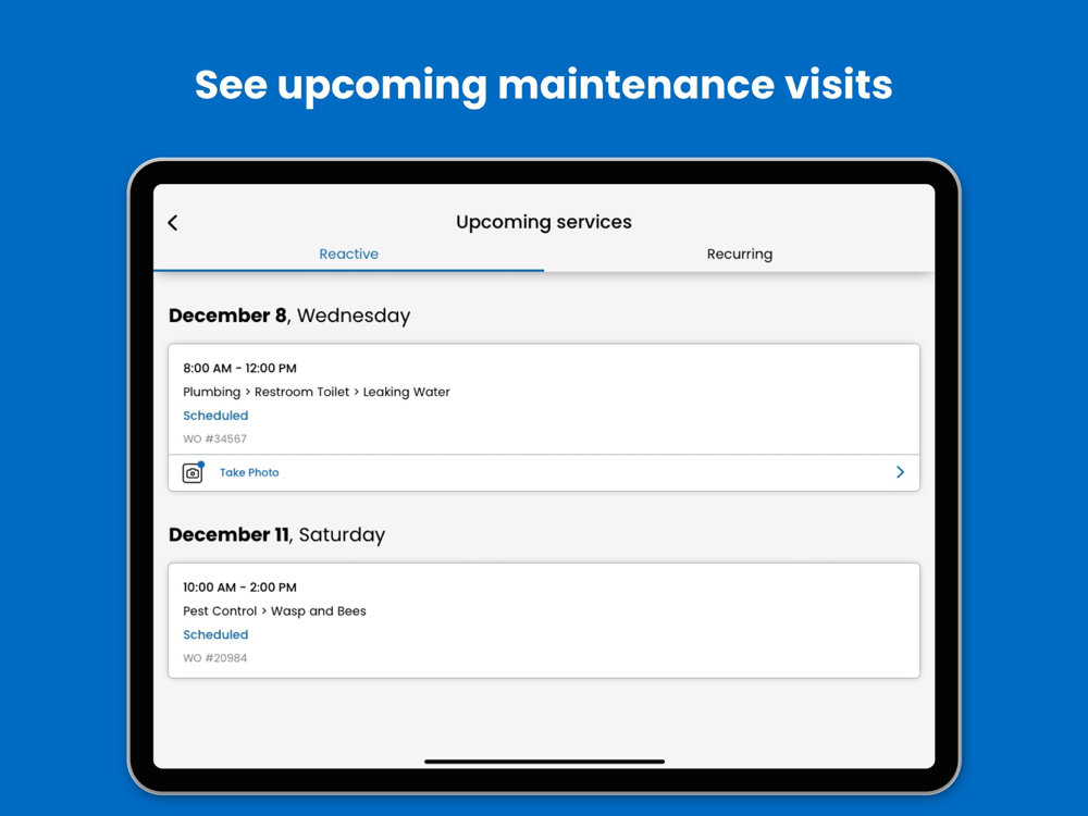 • Transparent – One Facility by SMS Assist keeps you informed of the status of every work order you submit. You can easily opt-in for push notifications on important updates, such as when your technician has been assigned and when your service visit has been scheduled.