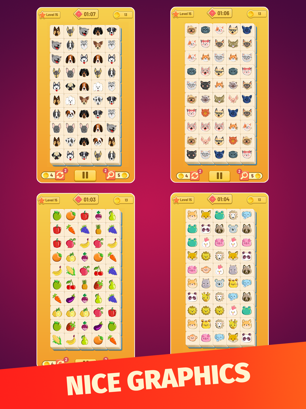 • Classic and modern Mahjong Onet Connect tiles