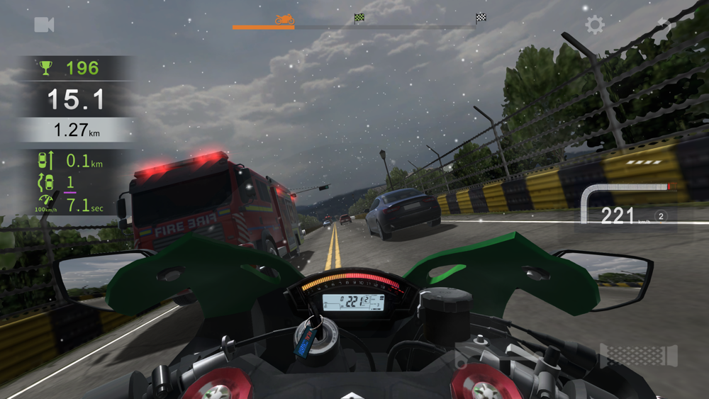 Experience thrilling motorcycle racing while speeding through the vehicles!