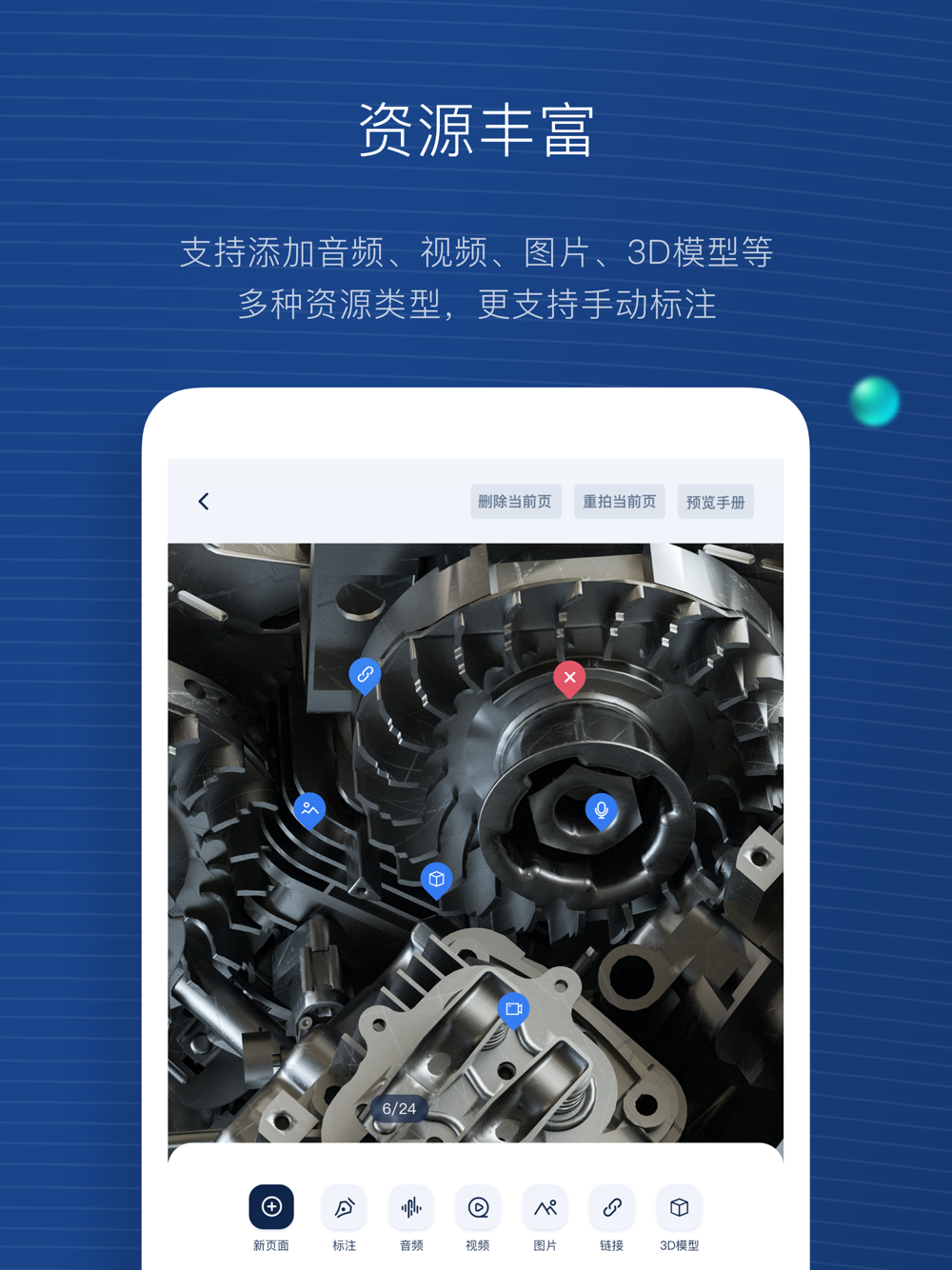 支持添加音视频、图片、链接、AR模型等多种资源类型