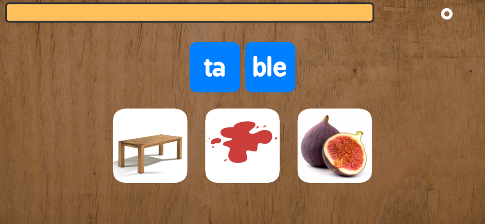 Lisez le mot divisé en syllabes et sélectionnez l'image correspondante. Lorsque vous sélectionnez la bonne image, vous pouvez passer au mot suivant.