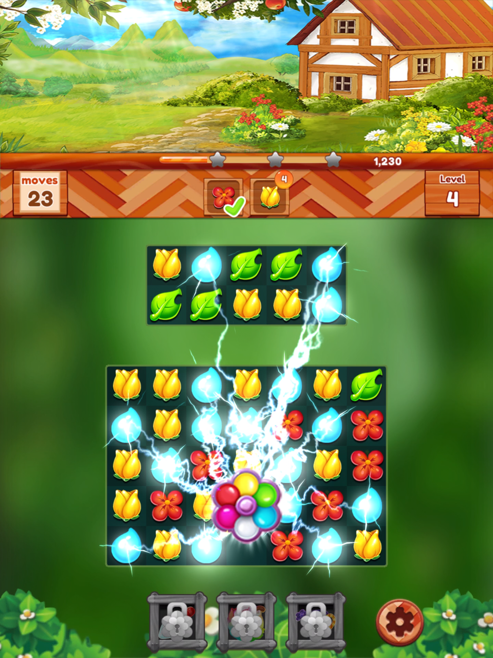 If you match 4 or more of a kind, a special item appears! You can clear loads of flowers with it.