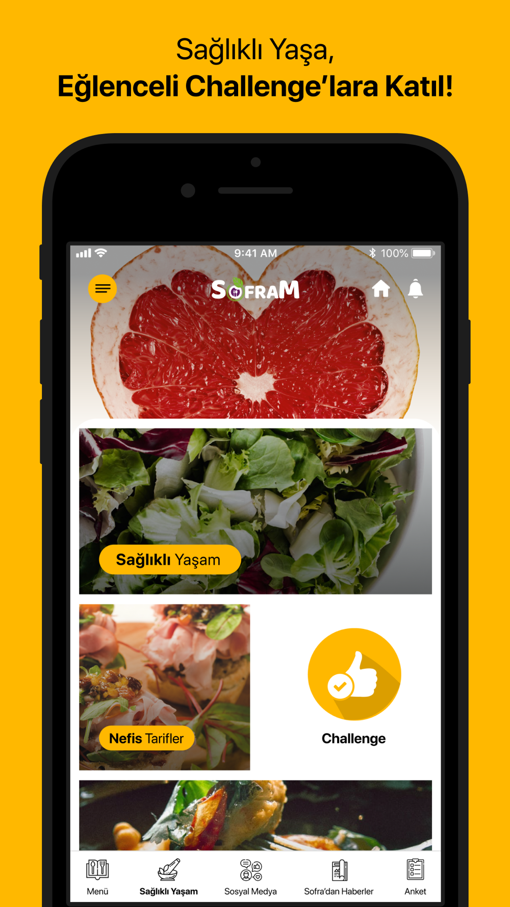 Ayrıca kullanıcılar temel besin içeriklerinin çok ötesinde sağlığımızın korunmasına destek olan, hem bağışıklığımızı güçlendiren hem de ruh halimizi iyileştiren”Süper Besinler” başta olmak üzere sağlıklı yaşama dair güncel bilgilerle önerilerimizi takip edebilir. Süper besinlerle önerdiğimiz mevsimine uygun farklı tarifleri mutfaklarında uygulamayı deneyebilir. Her ay belirlenecek yeni bir challenge ile bazı iyi alışkanlıkları hayatlarına katmak, bazı kötü alışkanlıklardan kurtulmak için neler yapılabileceğini keşfedebilir. Aynı zamanda sosyal medya hesaplarımıza tek platform üzerinden ulaşarak bizimle etkileşimde bulunabilirler.