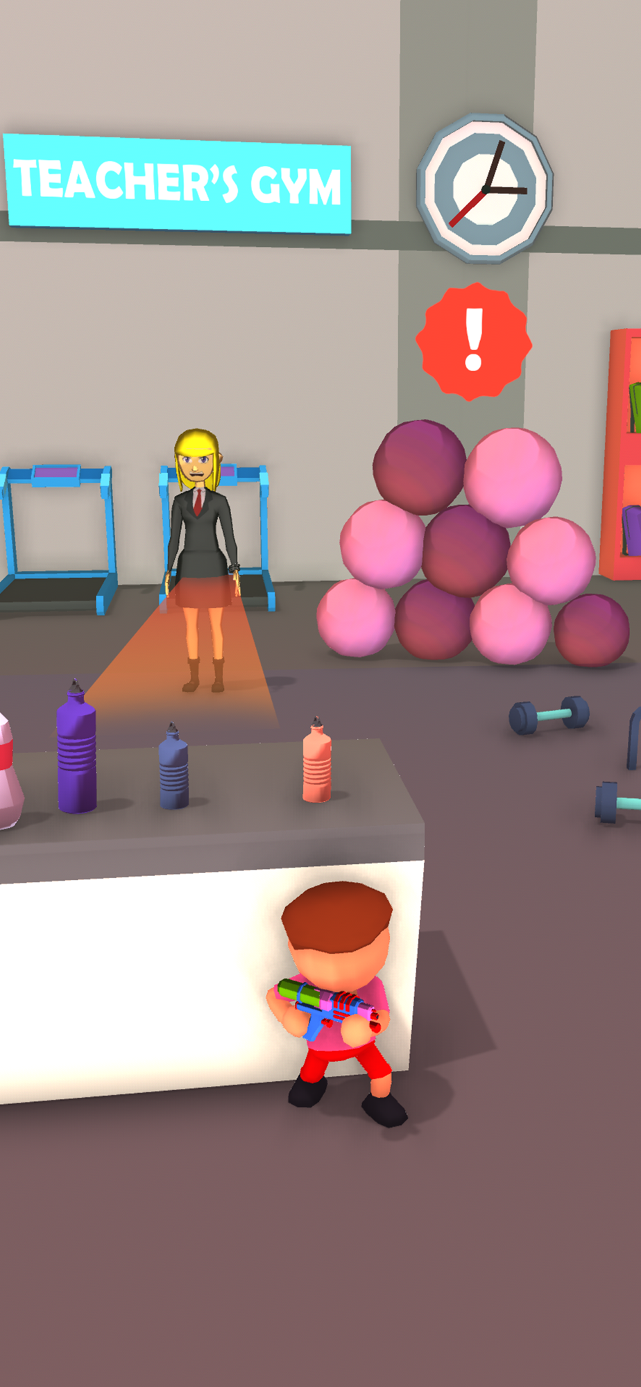 You need to hide behind a hurdle and perform different funny tasks to tease your teacher in lighter mode.