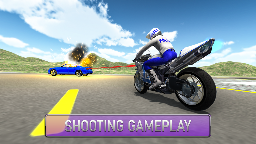 In this game, you are a police officer and your duty is to protect citizen by chasing and shooting target cars. You will ride a cop bike and on the bike you will be equipped with machine guns, which can shoot the escaping target. Game takes place in a city environment and there are multiple roads where target can escape. So your driving skill are going to be put in the test.