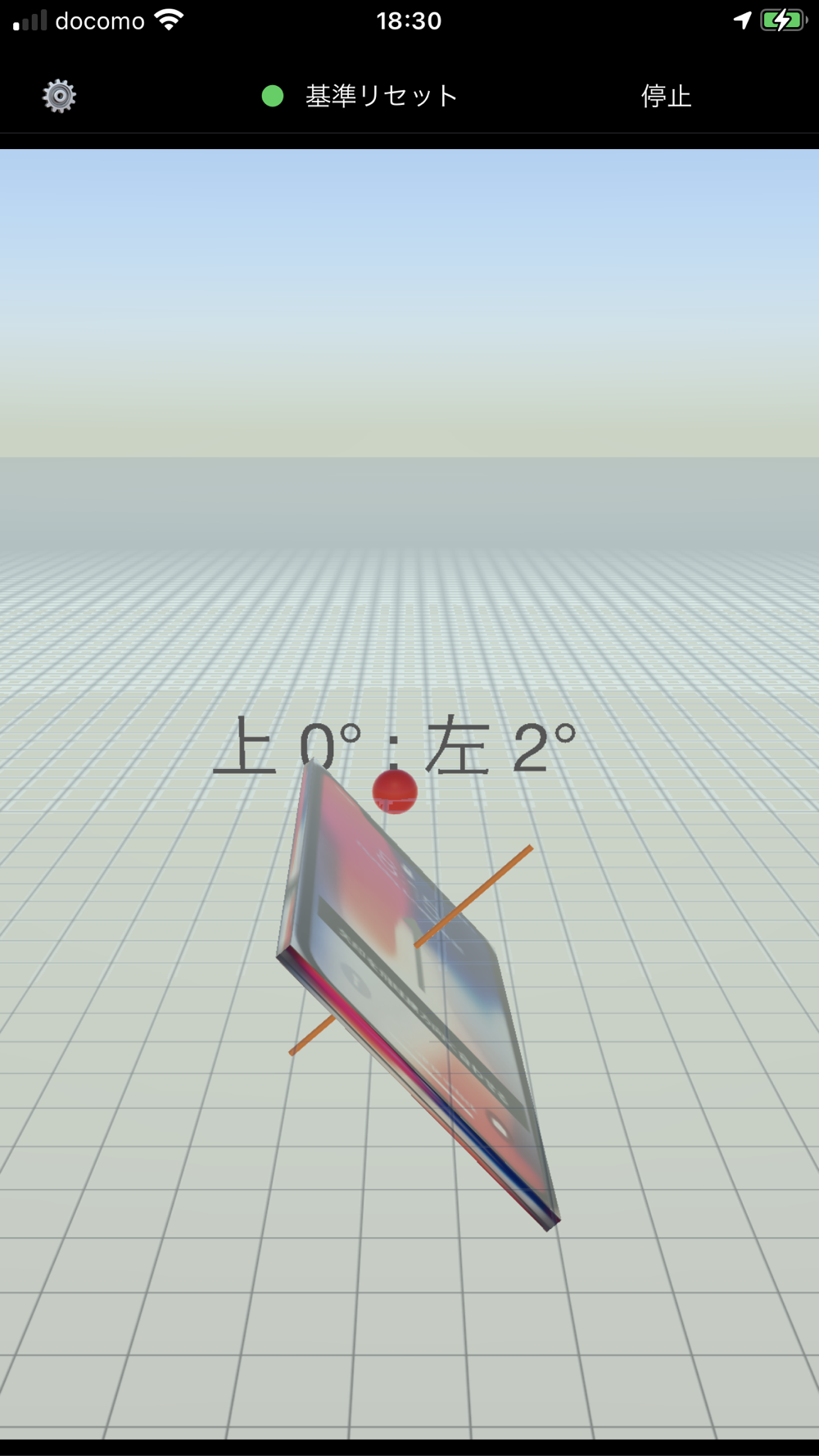 4.そのまま持ち上げてください。これで「基準」に対してのそれぞれの数値(角度:左右、上下)が表示されています。