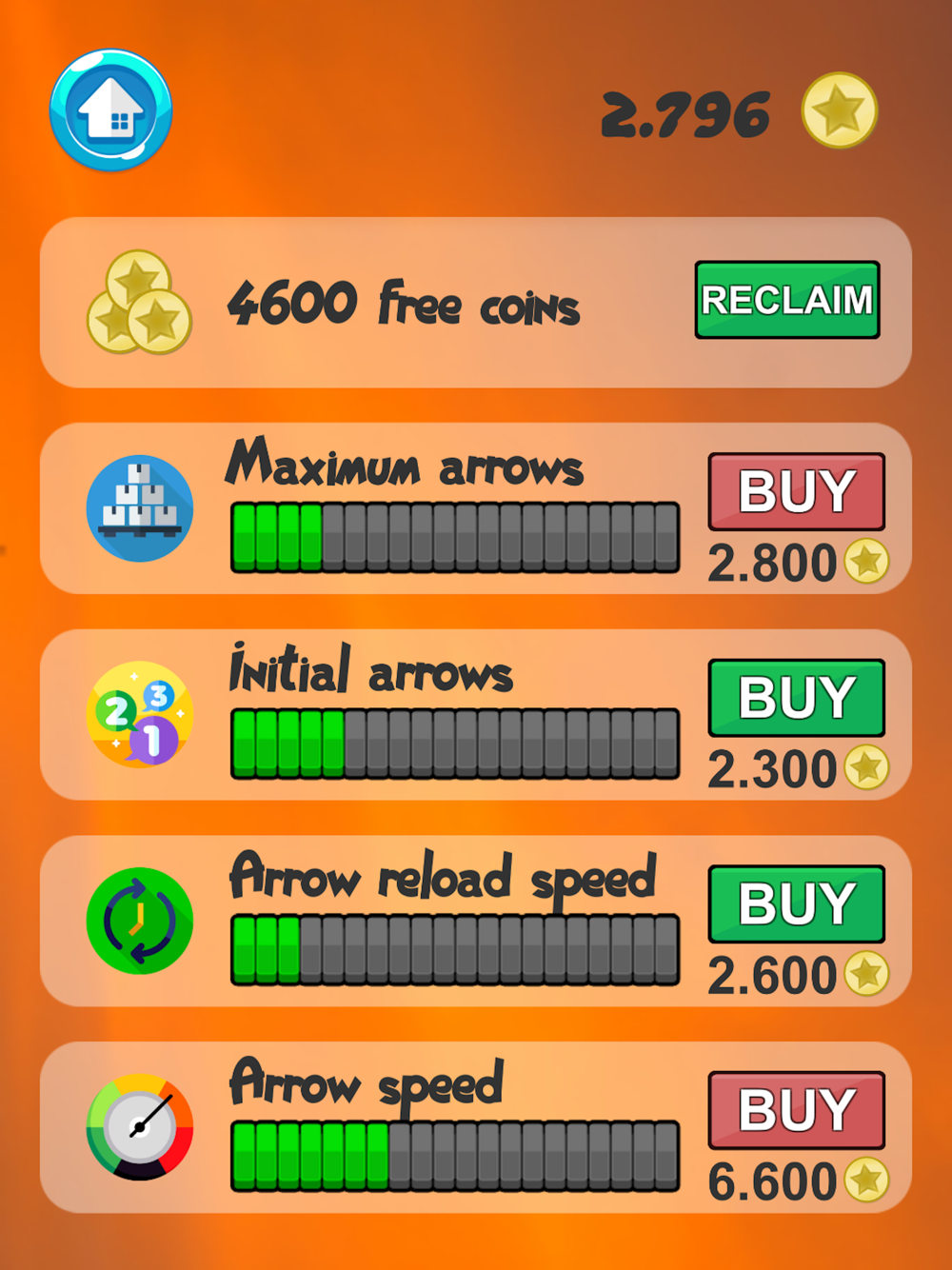 ● Upgrade your crossbow! This way you can shoot arrows faster and it will be easier for you to advance in level.