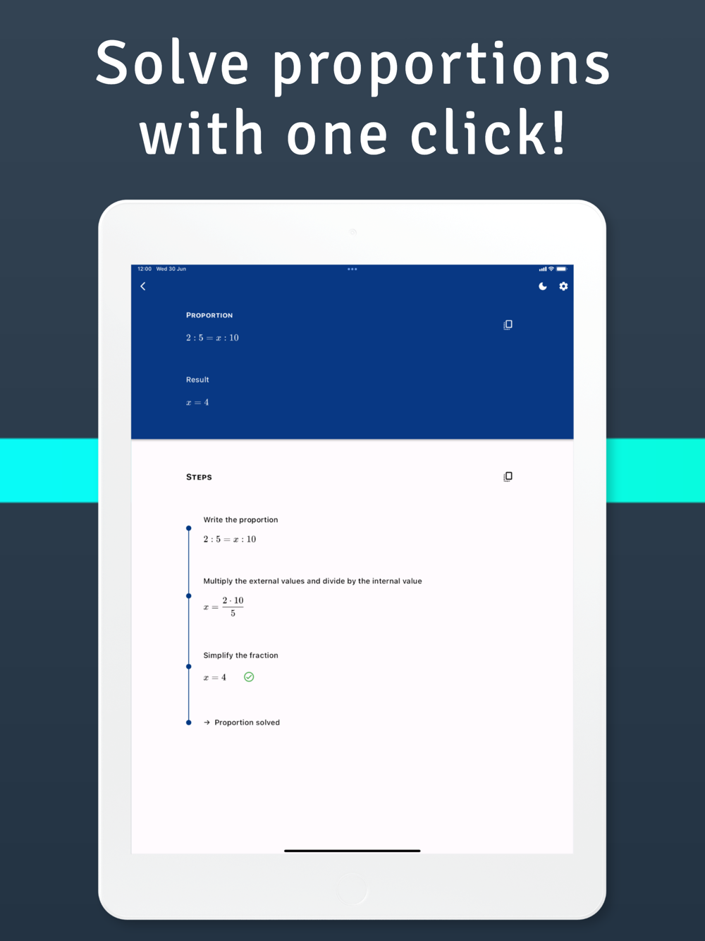 Solvers support classic proportions, continued proportions and proportions with sum or difference.