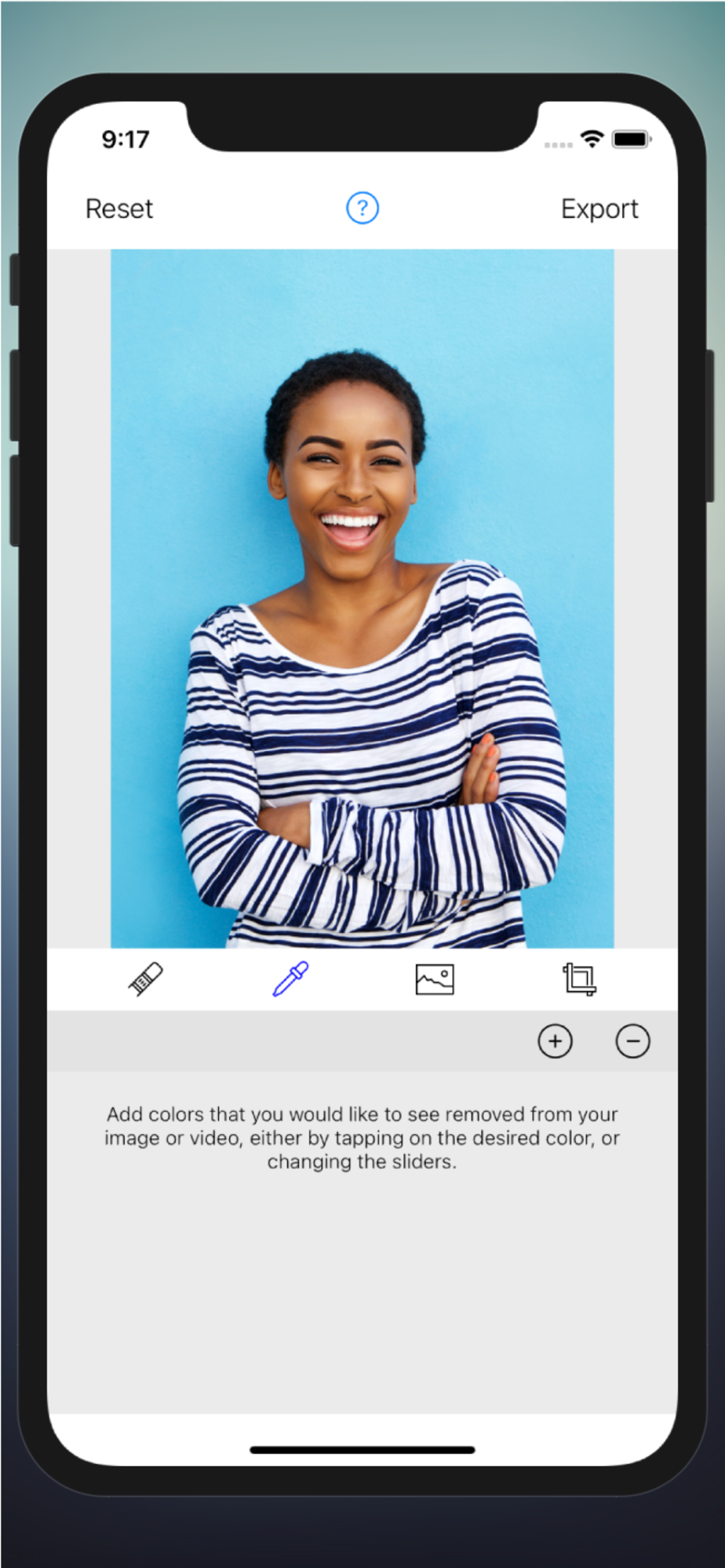 Use the color remover tool to make a list of up to 10 colors you wish to remove, simply by tapping on it with your finger.