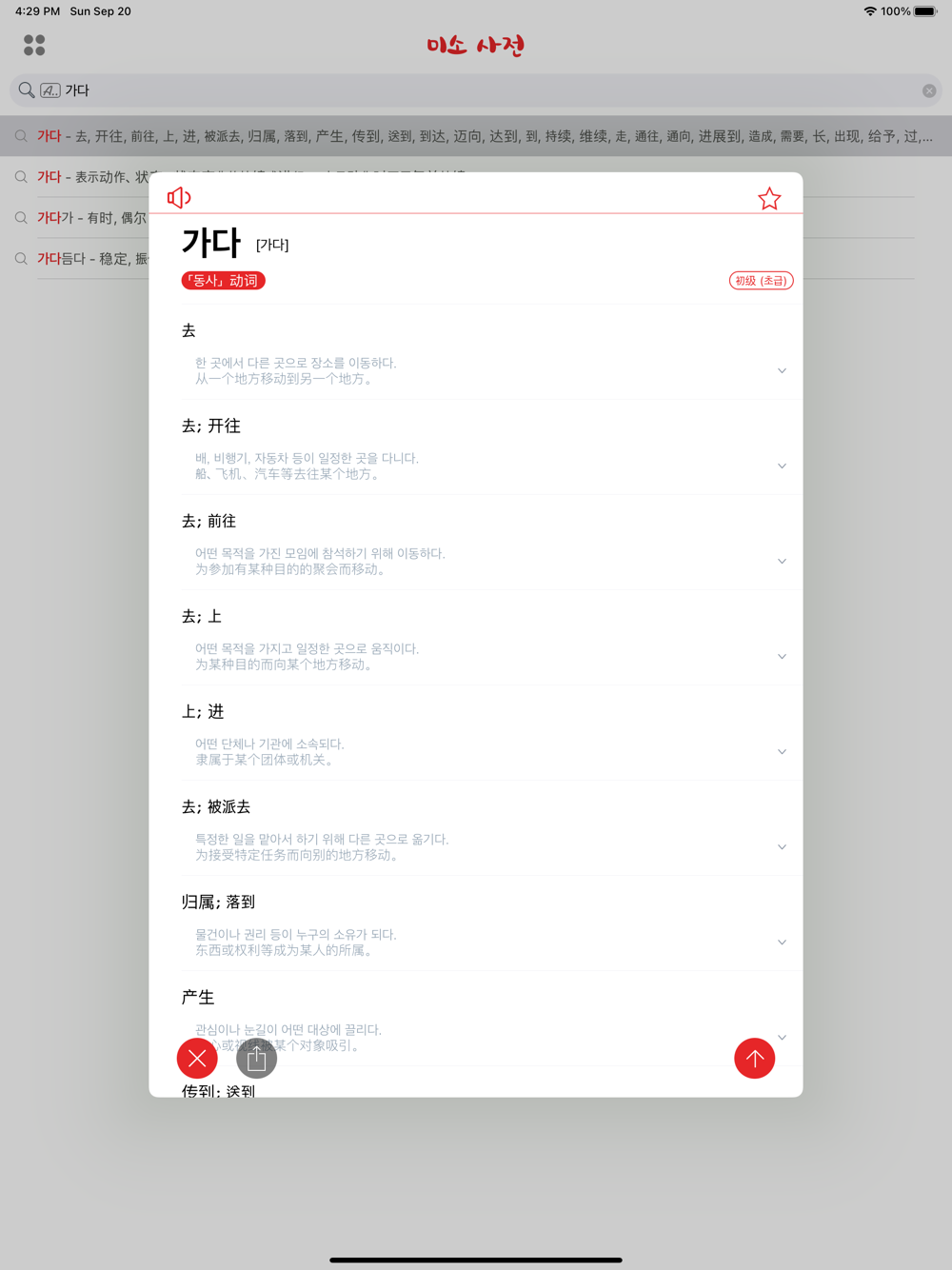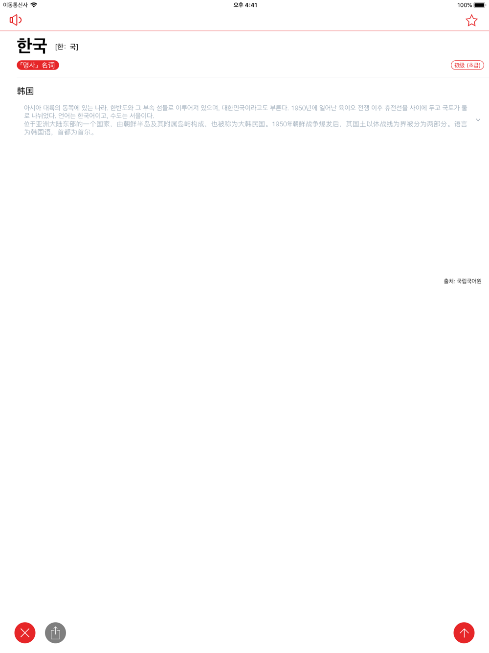 - Word explanation in both Korean and Chinese