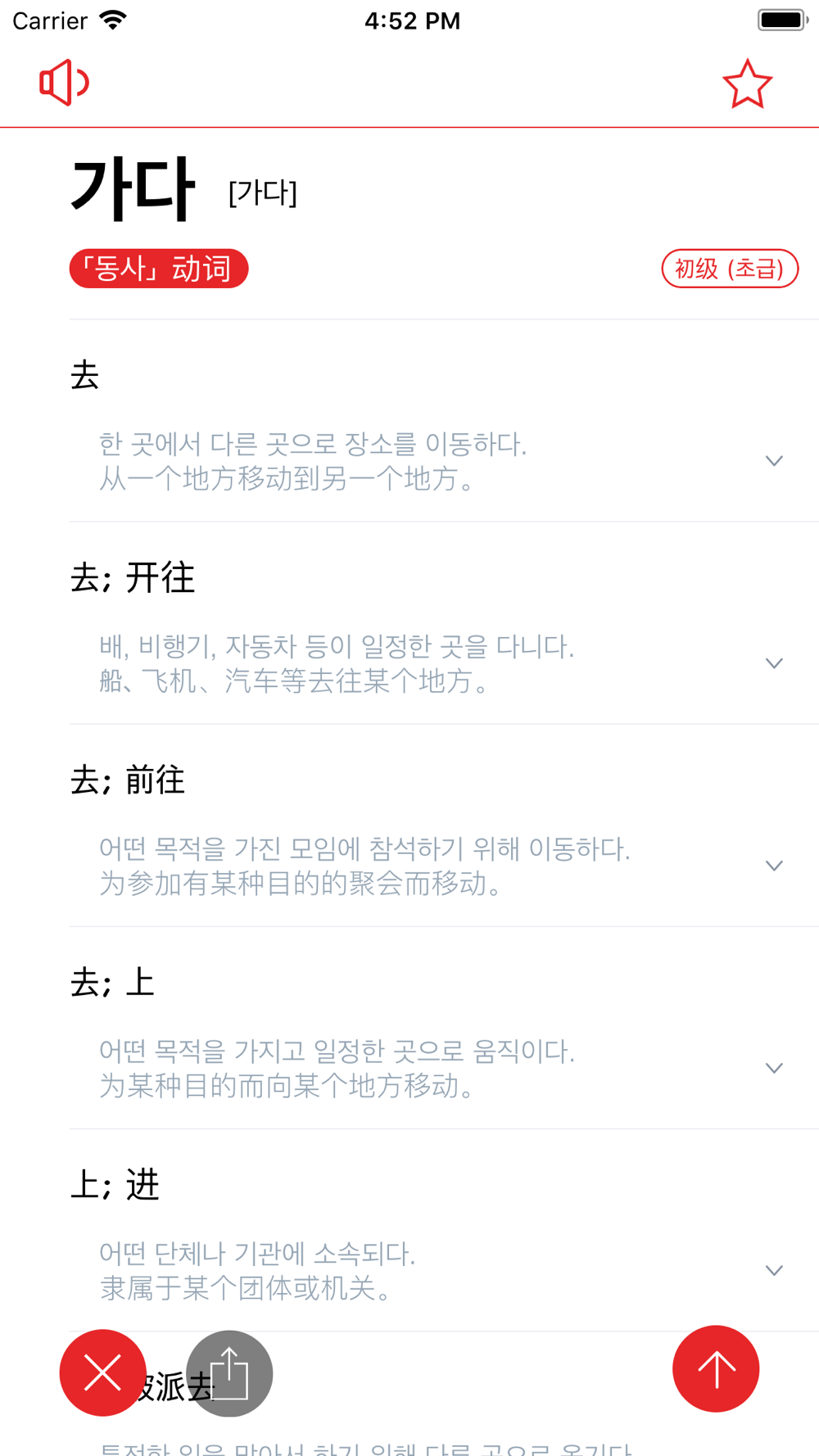 Korean-Chinese-Korean dictionary app containing around 50 thousand words of elementary, intermediate, advanced level.