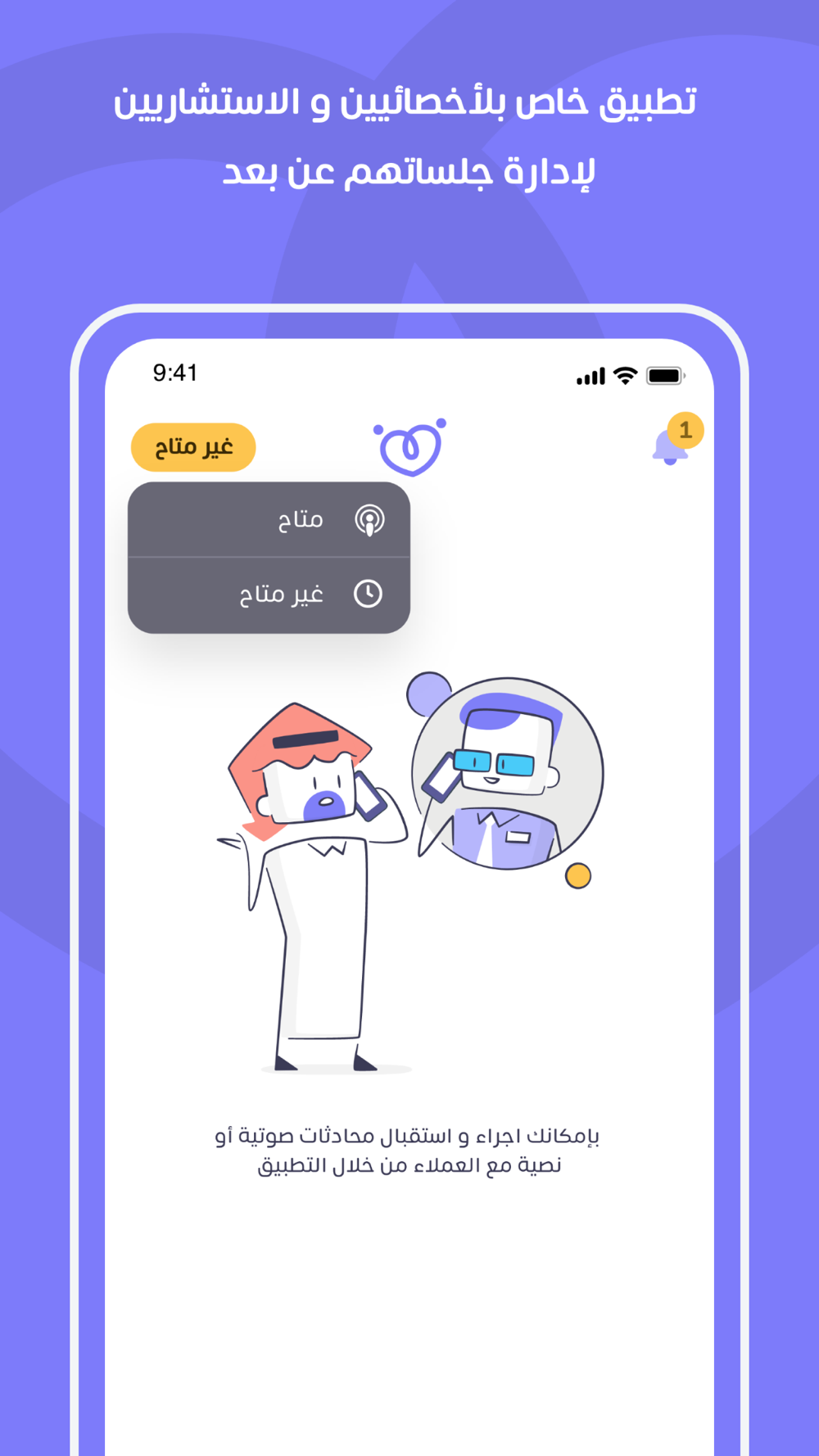 - بإمكانك إجراء أو استقبال محادثات صوتية أو نصية مع العملاء من خلال التطبيق.