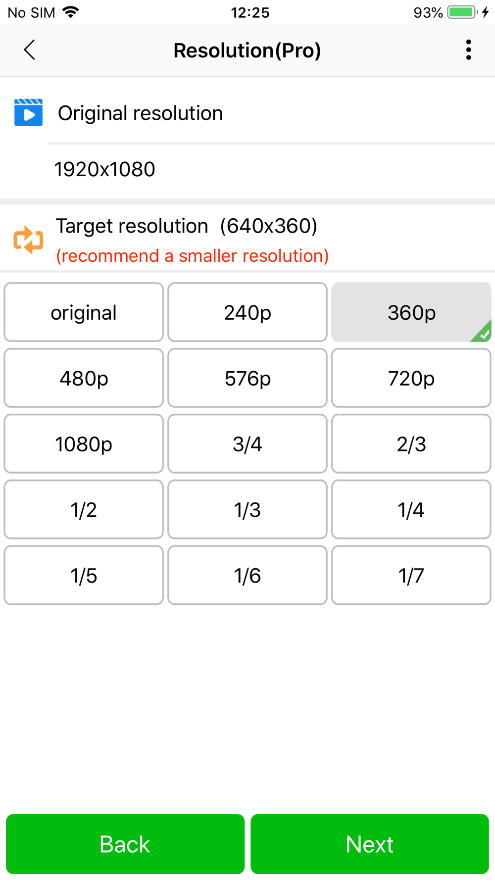 6. In the quick mode, two steps to complete the compression(just select resolution).