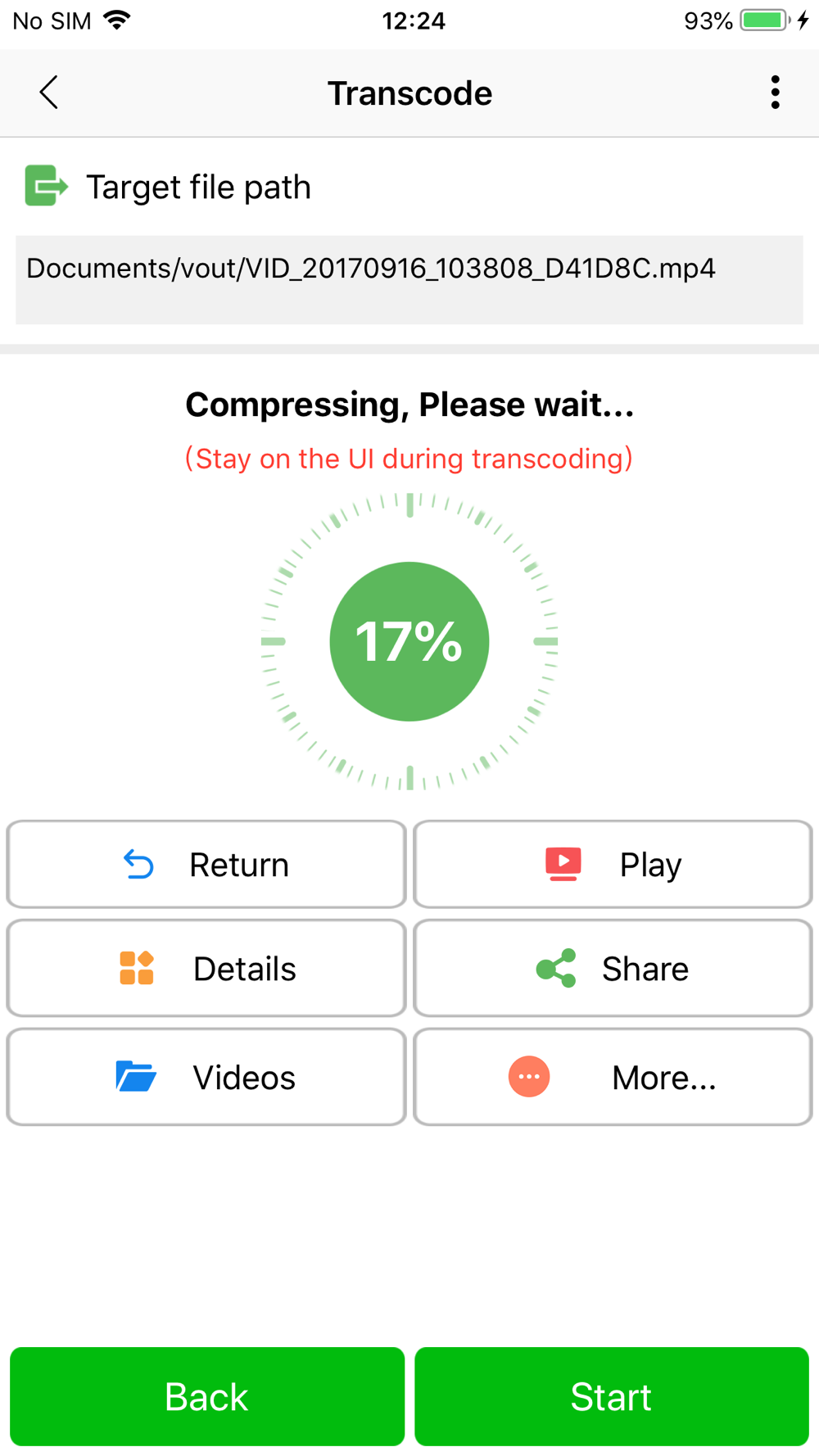11. After compression, it can play video, view video details, sharing video and manage videos.