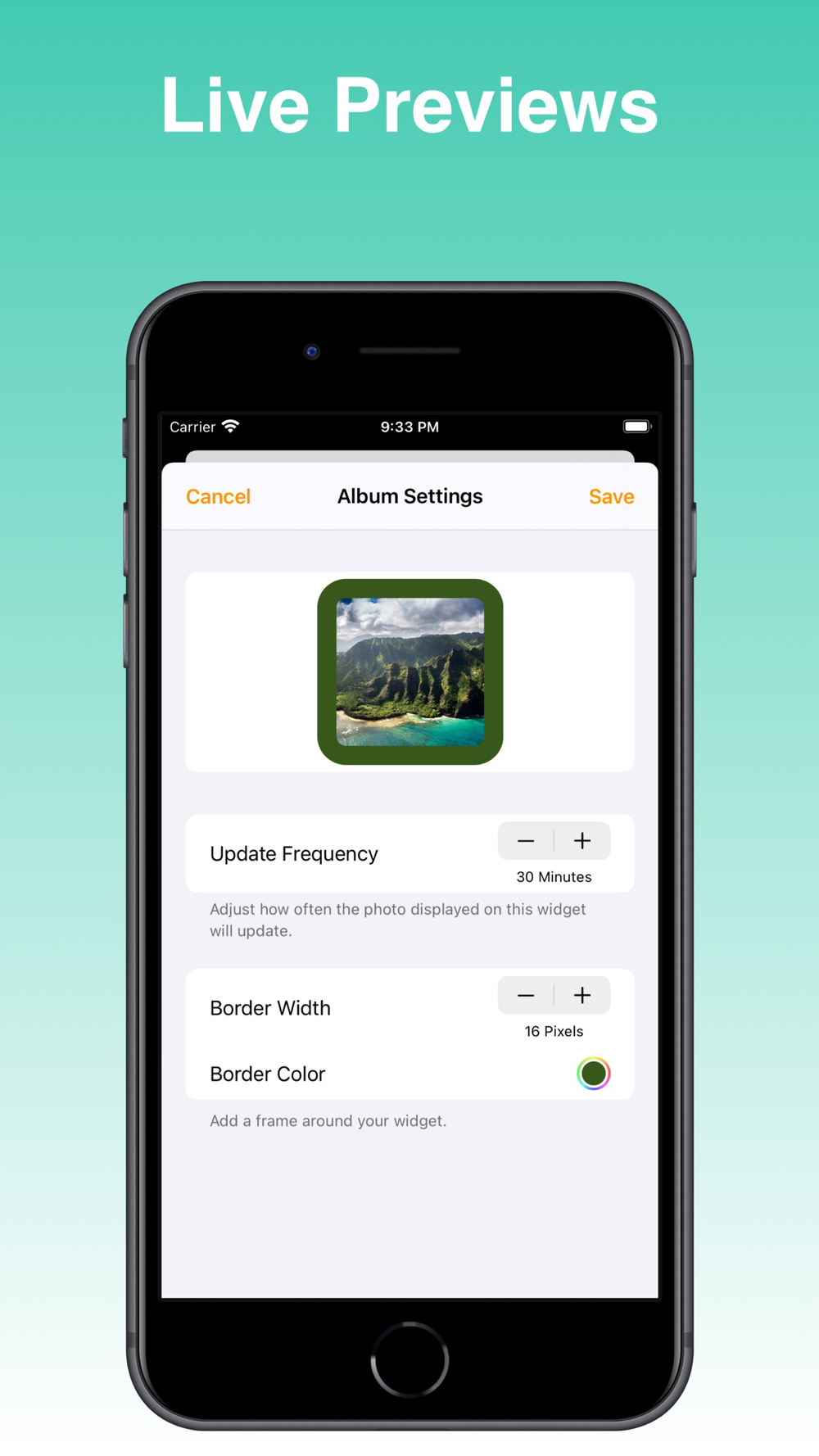 Add custom borders around your images to perfectly match your aesthetic.