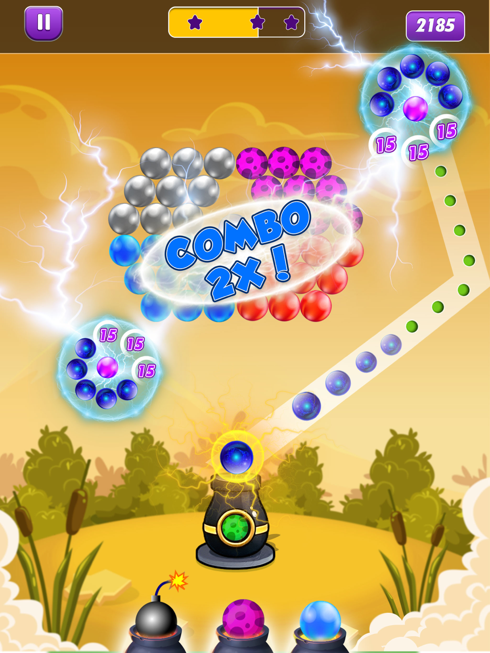 * Shoot bubbles with power-up bubbles: color, fire, lightning, magic bubbles. This is why it is called Double bubble shooter too.