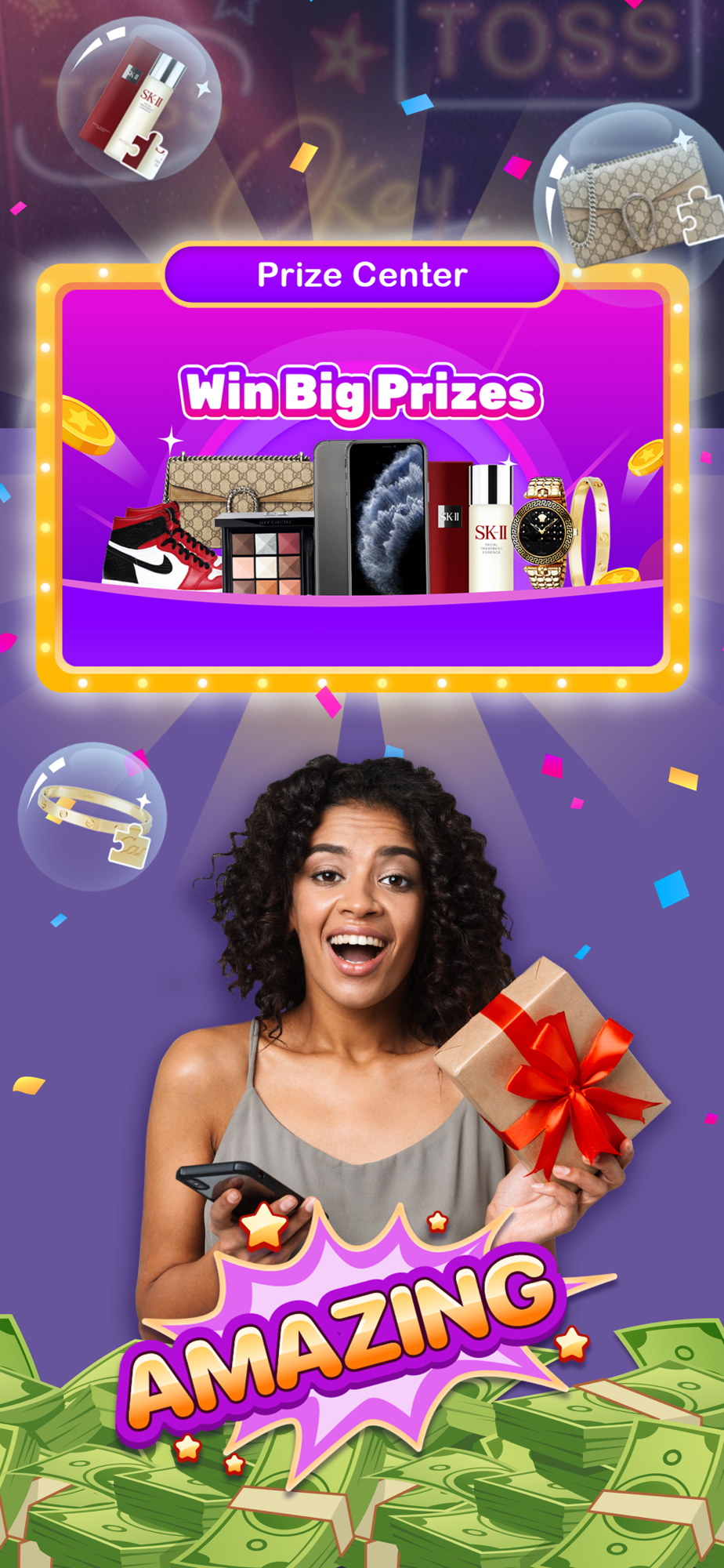 Toss 'em all offers different kinds of rewards. Just like in a circus game, the more you Toss, the more prizes you get. Toss 'em all and show your true strength.