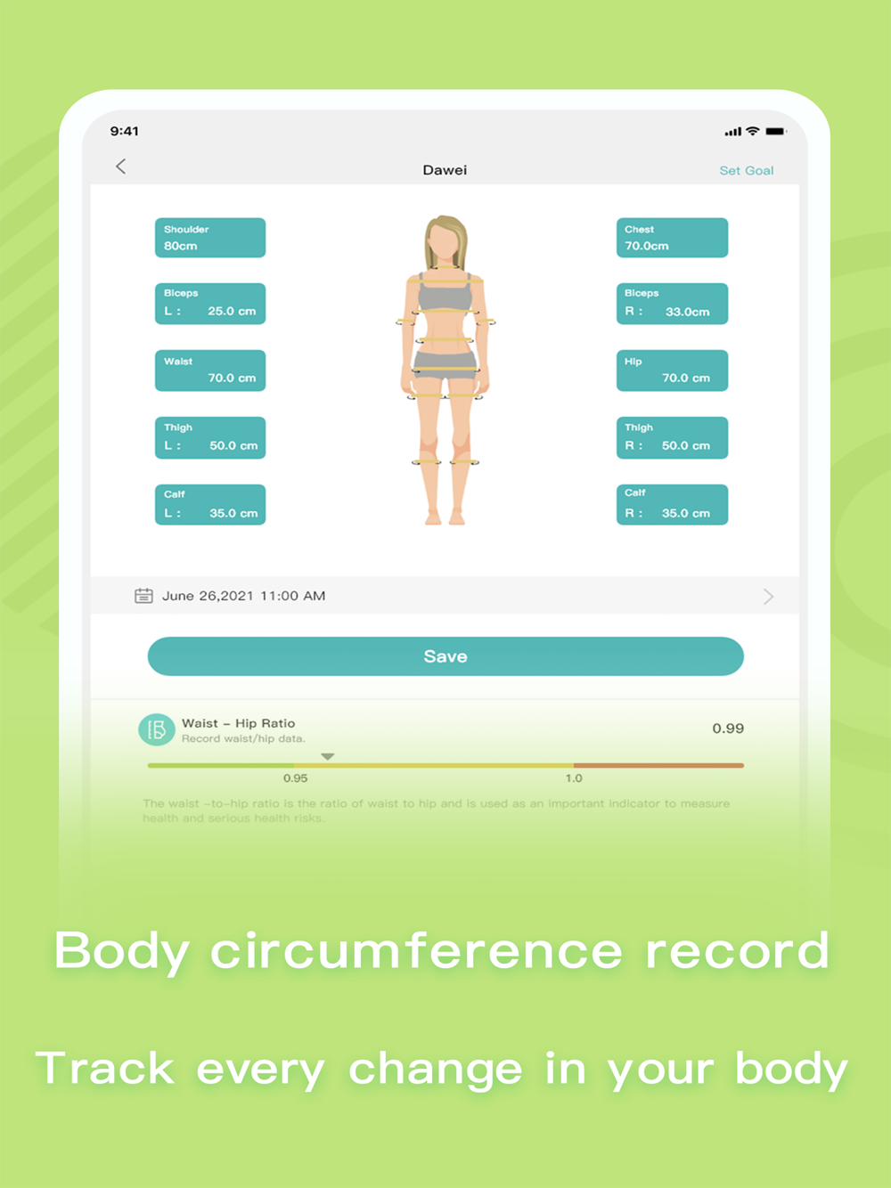 With Body Fat Scale APP, you can measure your body data (BMI, body fat, body water, bone mass, basal metabolism, body age, muscle mass, etc.). The device is connected to the APP to view 16 physical core health data.