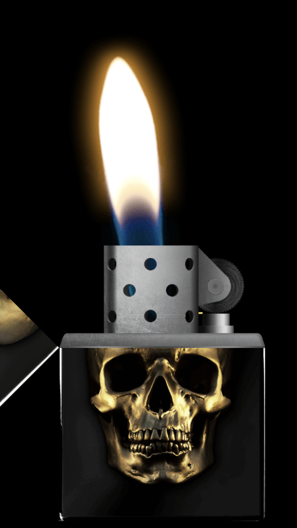 Use your finger or shake your phone to open cap of the lighter. When the top lid is open strike the stone wheel the same way you would do it with a real cigarette lighter. Sparks will appear under the flint and they should light the wick. As it is a very realistic simulator, it is possible that you will not manage to make a fire for the first time. You have to keep trying to spin the stone wheel until the fire appears (please use "Light the flame at first time" feature in settings to change that behaviour).