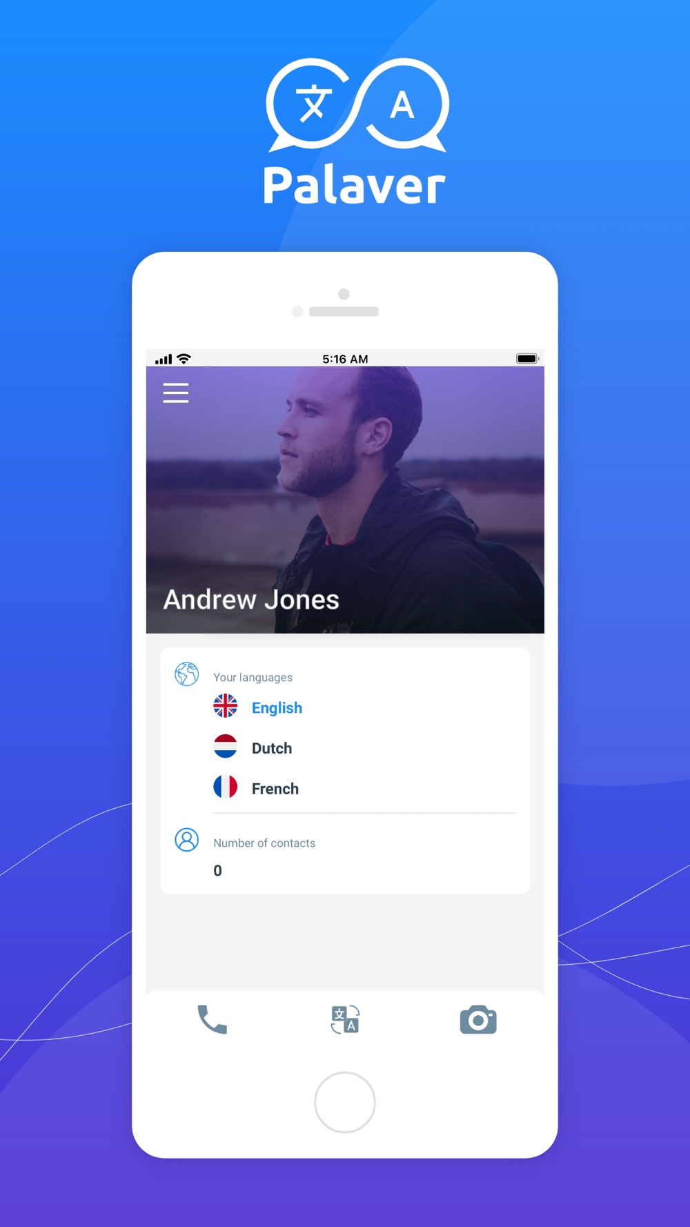 Using the app, you can make translated voice calls with other users of the app, where you speak in your native language and the other user will hear this in their own native language. This feature is also available with Palaver text chats