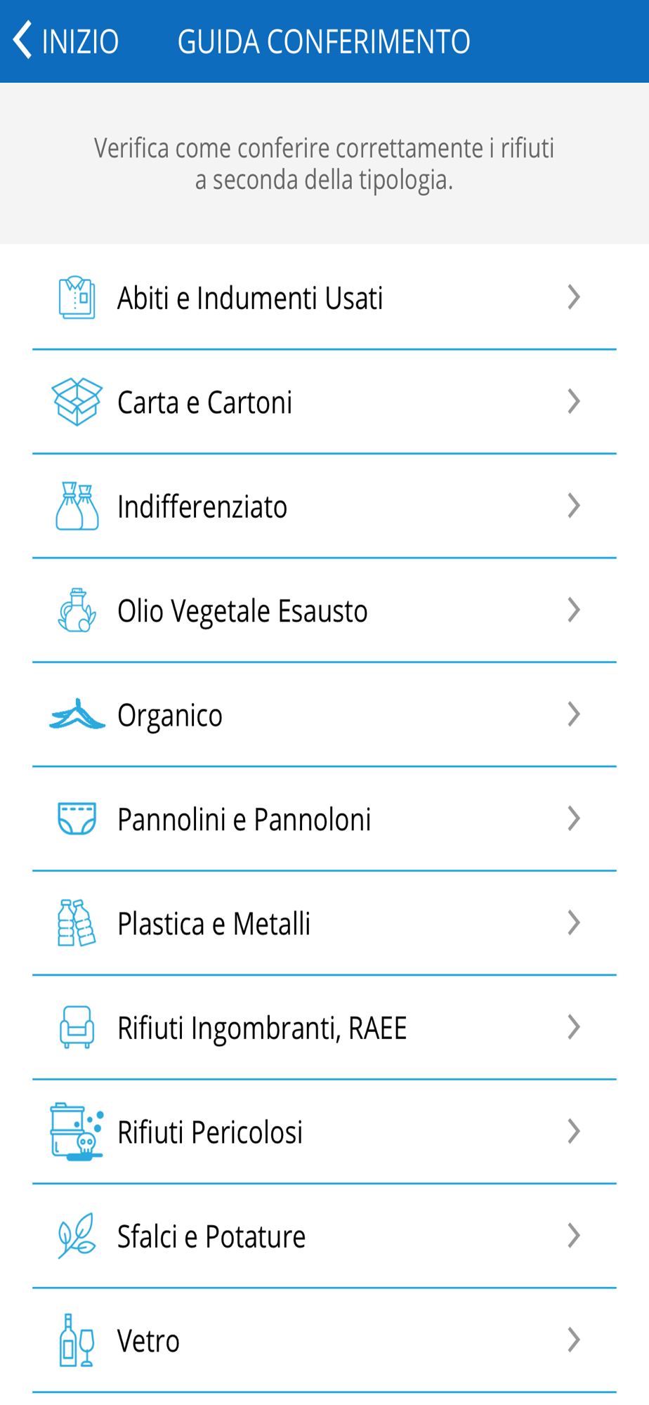 L’app offre all’utente una serie di funzionalità attraverso cui è possibile conoscere ed approfondire le modalità di conferimento dei rifiuti, ma è anche strumento utile per inviare segnalazioni e richieste di ritiro a domicilio, conoscere gli orari e i giorni di apertura del Centro di Raccolta, personalizzare le notifiche e tante altre funzioni.