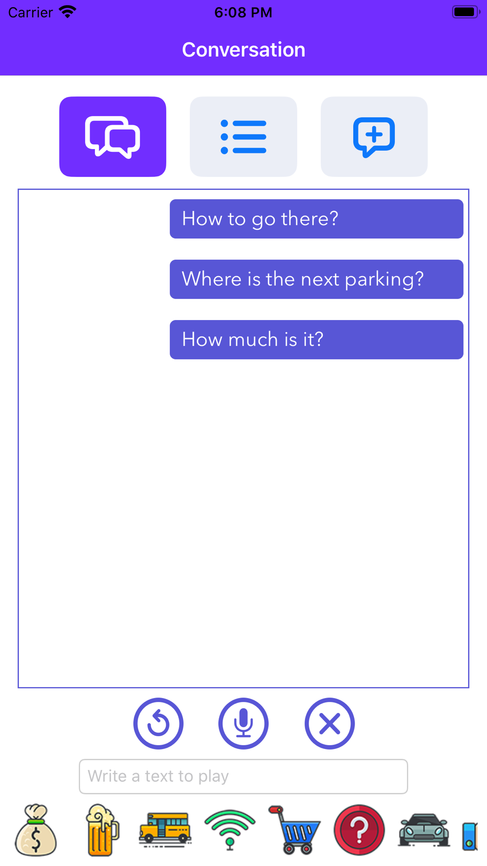 User can write, save messages and then make the app read then simply by tapping on the message text or icon.