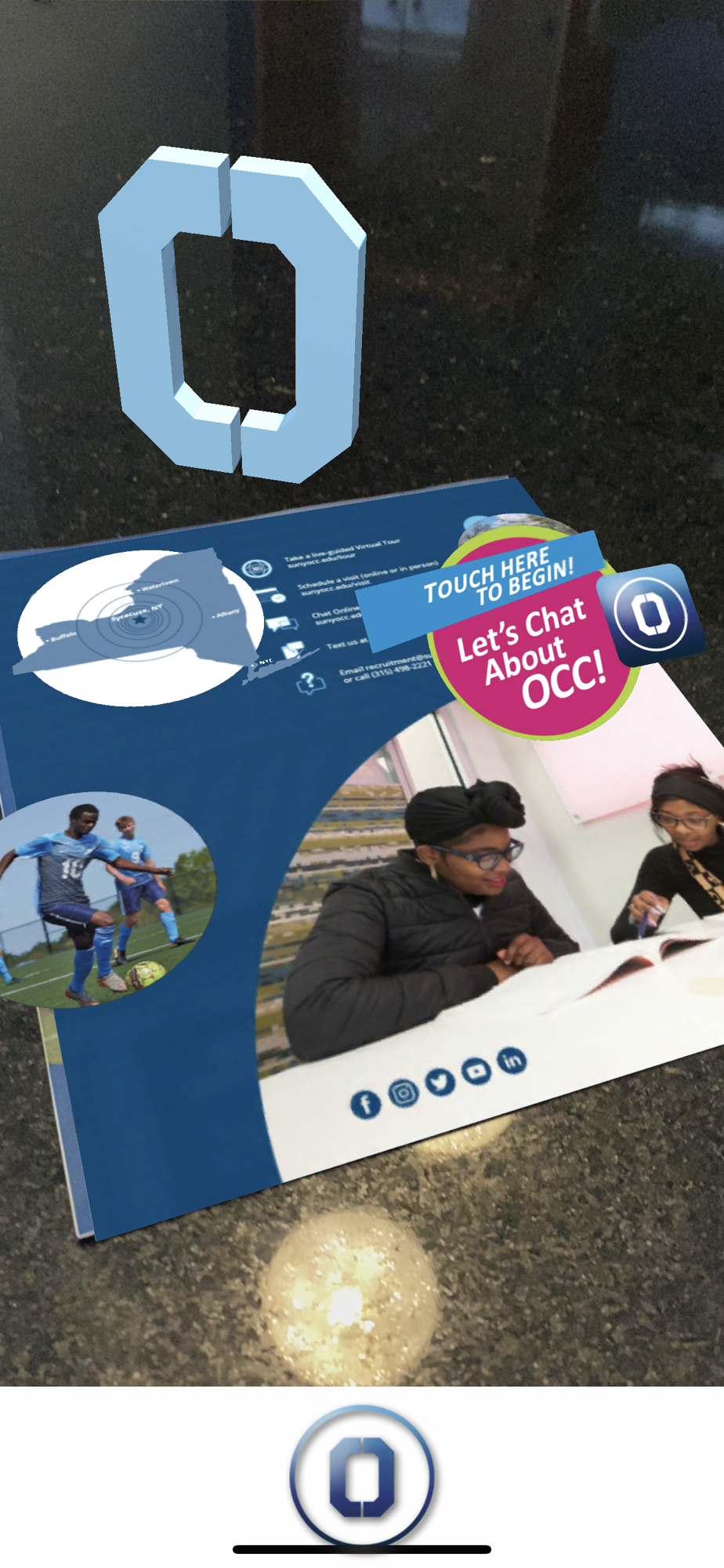 Onondaga is an augmented reality app that works with the Onondaga Community College viewbook. See a virtual version of the campus map and connect with Recruitment Specialist to find out more about what OCC has to offer you.
