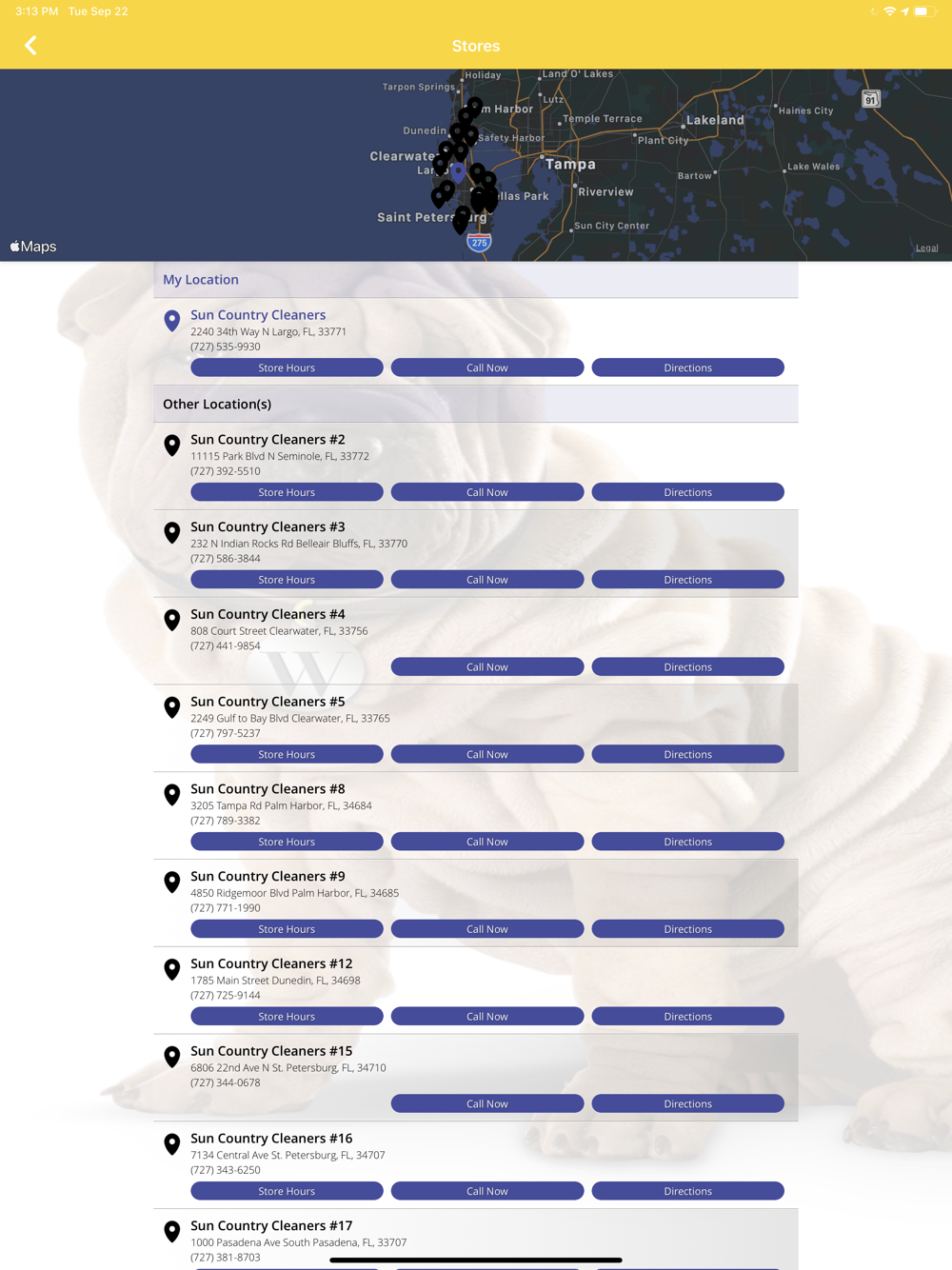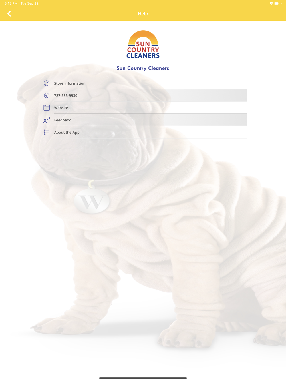 5) Quickly contact Sun Country Cleaners by phone or email and access their website all directly from your device.