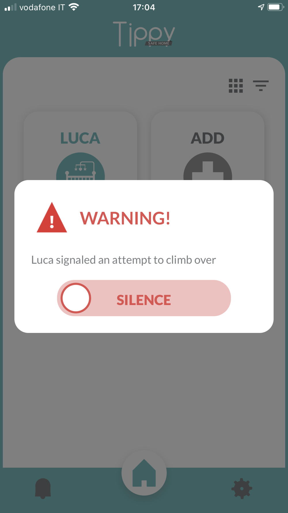 Tippy Safe Home is a Digicom application for the management of Tippy Rail, the first anti-fall device to be applied on bed rails. Tippy Rail is an innovative accessory capable of preventing the risk of falling by alerting the parent with a local and smartphone warning. In the case of a child climbing over the rail, the product is activated and triggers an audible alarm and sends an alert to the associated smartphone. Tippy Rail is able to detect the temperature of the room, informing the user within the app. It is also possible to set temperature ranges beyond which the user receives an acoustic alert.
