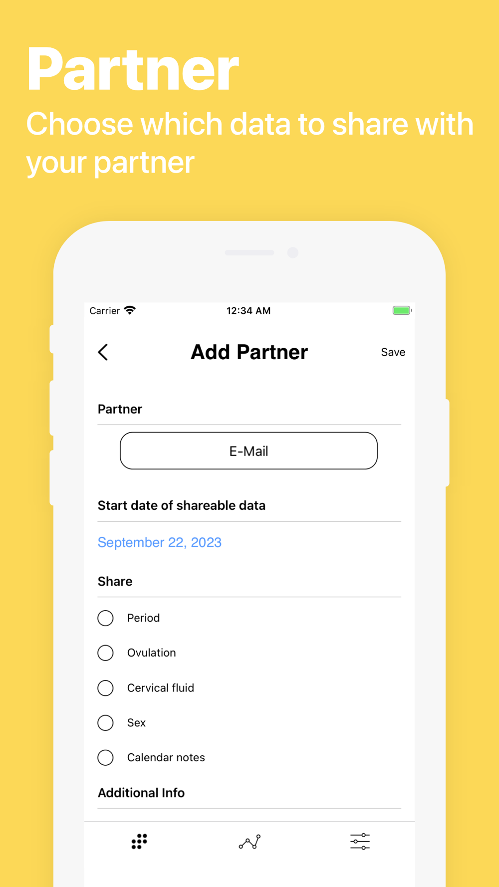 Invite your partner to download the DaysyDay Partner app and then choose which data can be shared and viewed.