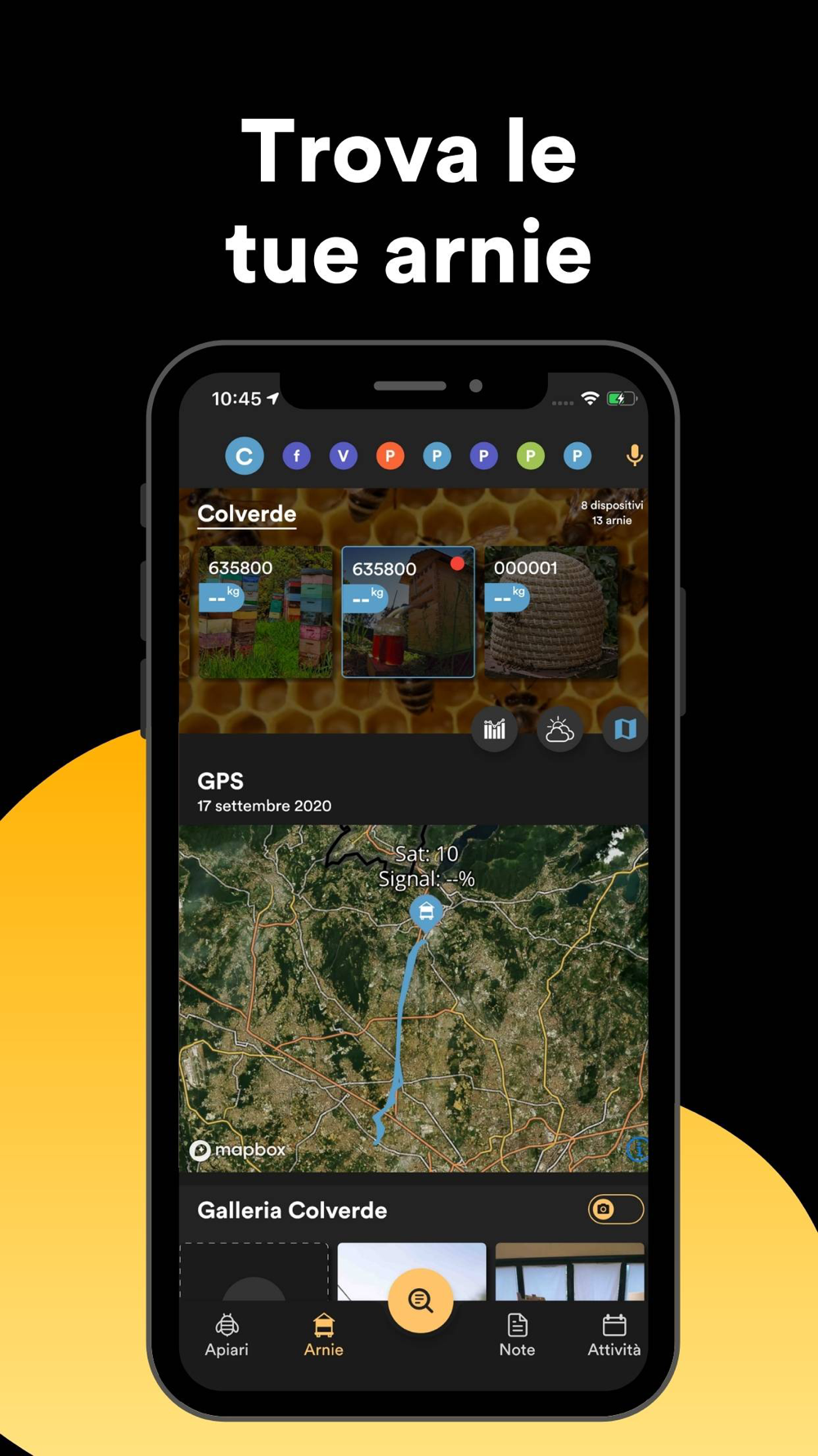 Collegando la tua APP agli antifurto 3Bee potrai visualizzare la posizione attuale dell'arnia ed essere avvisato tempestivamente se viene spostata seguendone gli spostamenti attraverso GPS.