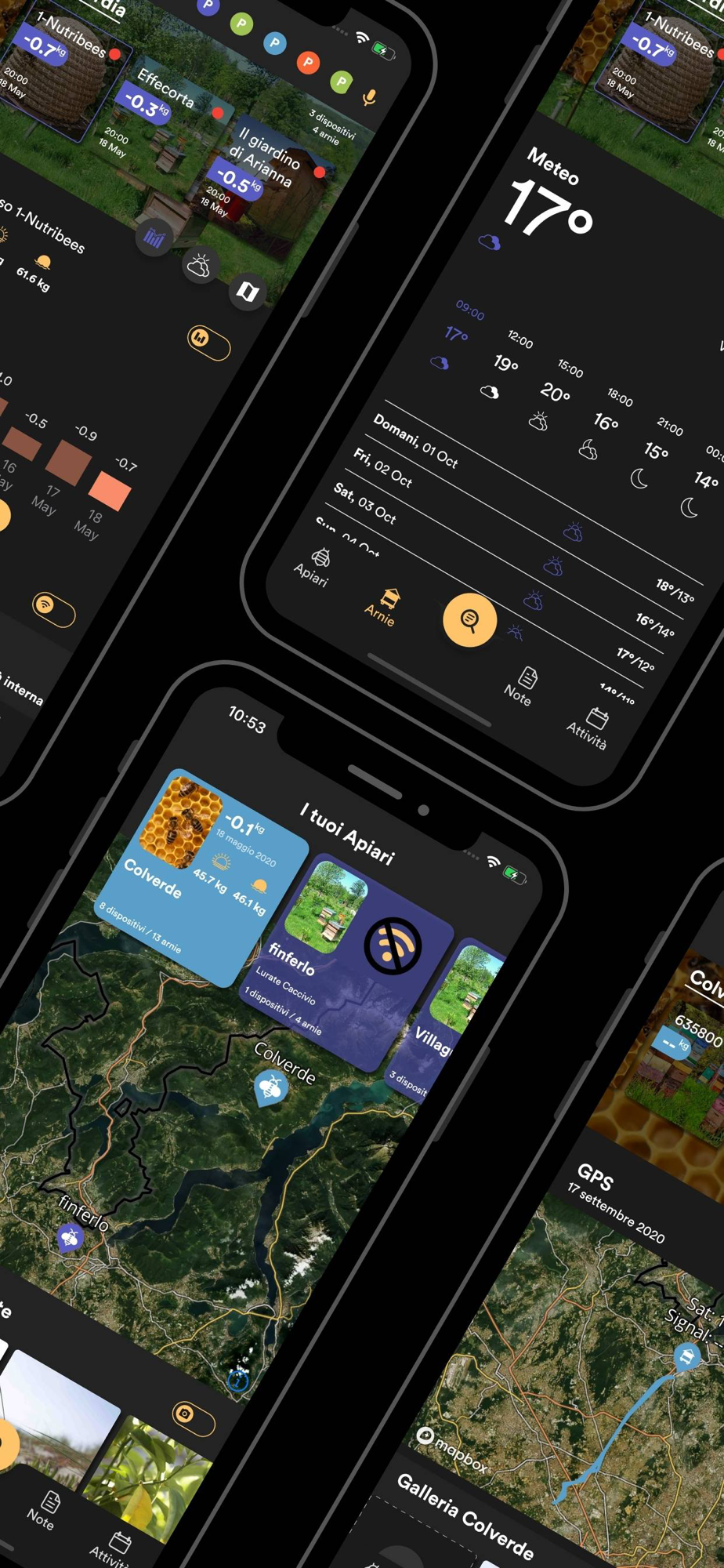 Collegando la tua APP alle bilance 3Bee potrai monitorare costantemente da remoto i tuoi alveari e le tue api. Avrai sempre sotto controllo i parametri interni più importanti del tuo alveare: il peso, la temperatura interna/esterna, la frequenza sonora, l'umidità interna/esterna, le previsioni meteo.