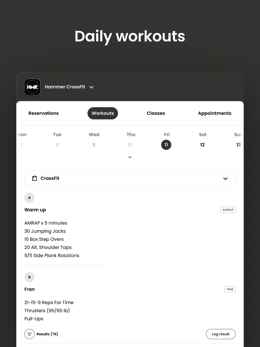 For members of Hammer CrossFit to reserve their place in a class, sign up for gym events, and general account management like updating headshots and credit card on file.