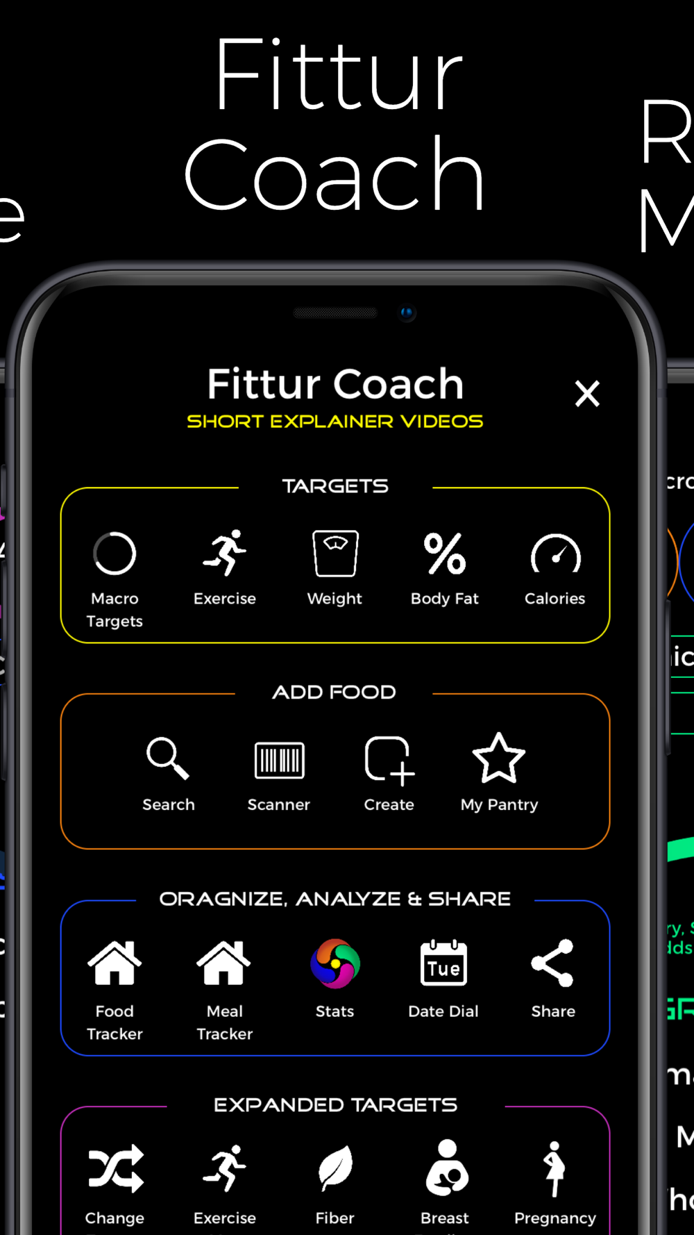 The Fittur pregnancy and postpartum diet app guides your nutrition during pregnancy. Balances your nutrition during the critical breast feeding stage. Then helps you transition to your ideal body composition after pregnancy. You can even transform your app into a life long calorie counter and macro tracker.