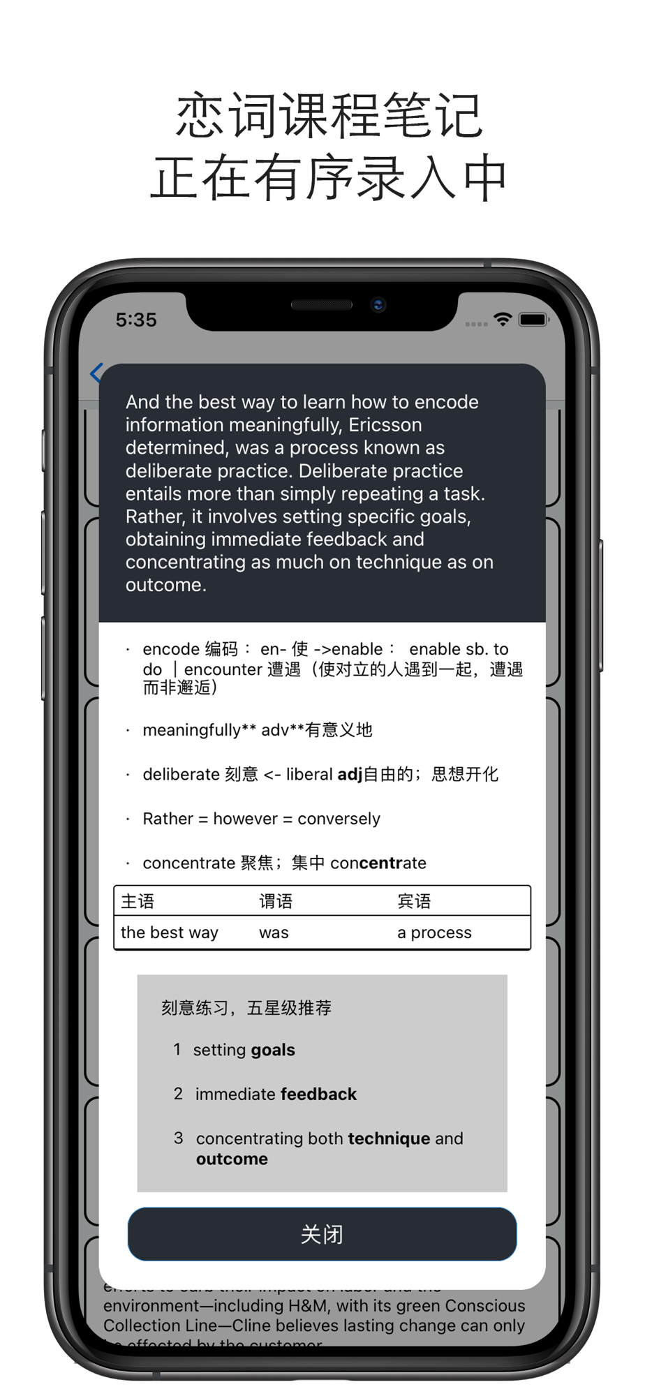 后来我干脆以句子为单位学习,把一个句子学透,然后不断的重复它。当你看着翻译尝试复述句子时,你会发现每个句子都包含着大量的知识点,这是光看句子本身无法察觉到的。