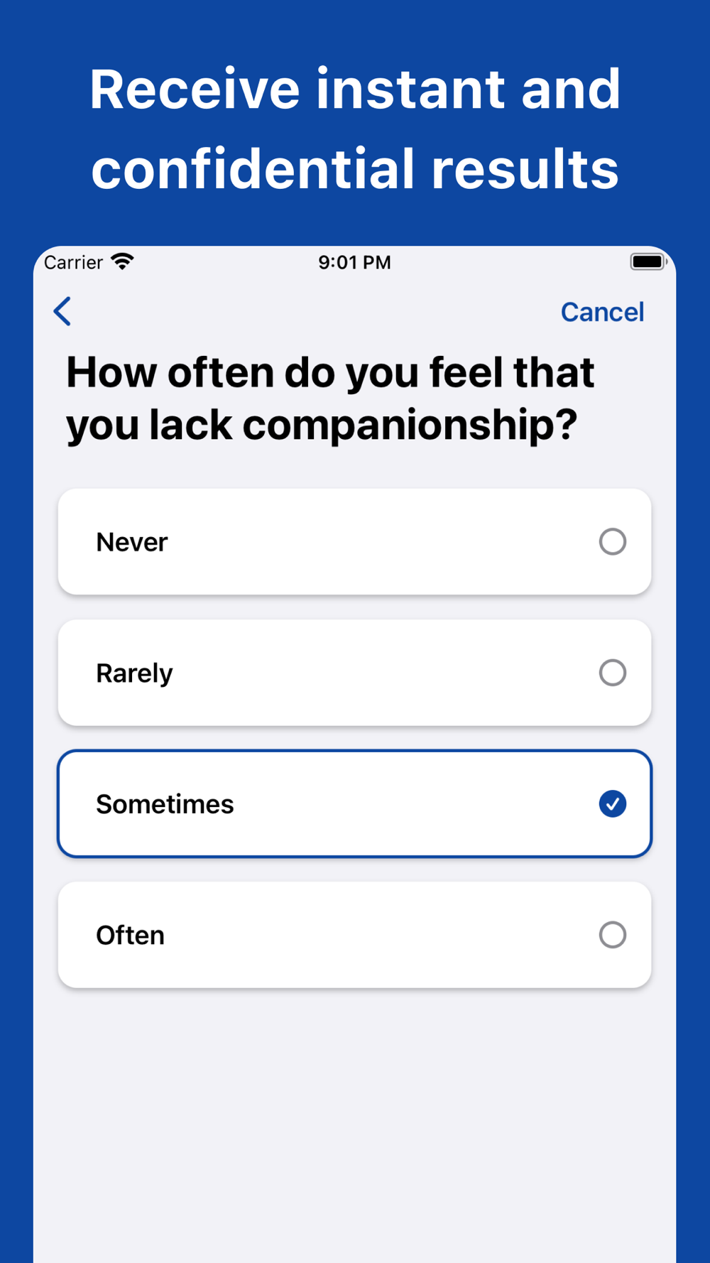 Evaluate your loneliness level with a validated questionnaire.