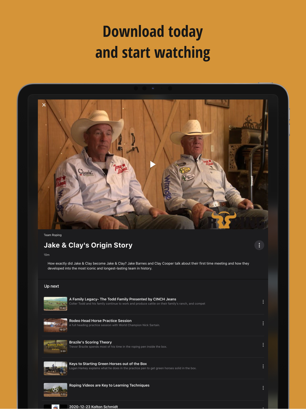Get the ultimate roping experience, from entertainment to instruction. Roping.com has videos for team ropers, breakaway, and calf ropers. Get private access to World Champions Jake Barnes, Matt Sherwood, Clay Cooper, Lari Dee Guy, JJ Hampton, Caleb Smidt and more. And we're the exclusive home of Trevor Brazile and Miles Baker's Relentless Remuda, with the winningest cowboy in the world's full training system. Plus, don't miss the industry's richest events streaming only on Roping.com: