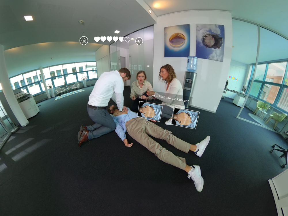 Während der Experience erscheinen Dir Fragen, die Du möglichst schnell per Blicknavigation richtig beantworten musst - jede Sekunde zählt! Nur so kannst Du den Spielverlauf positiv beeinflussen und Deinen Kollegen bis zum Eintreffen der Sanitäter retten.
