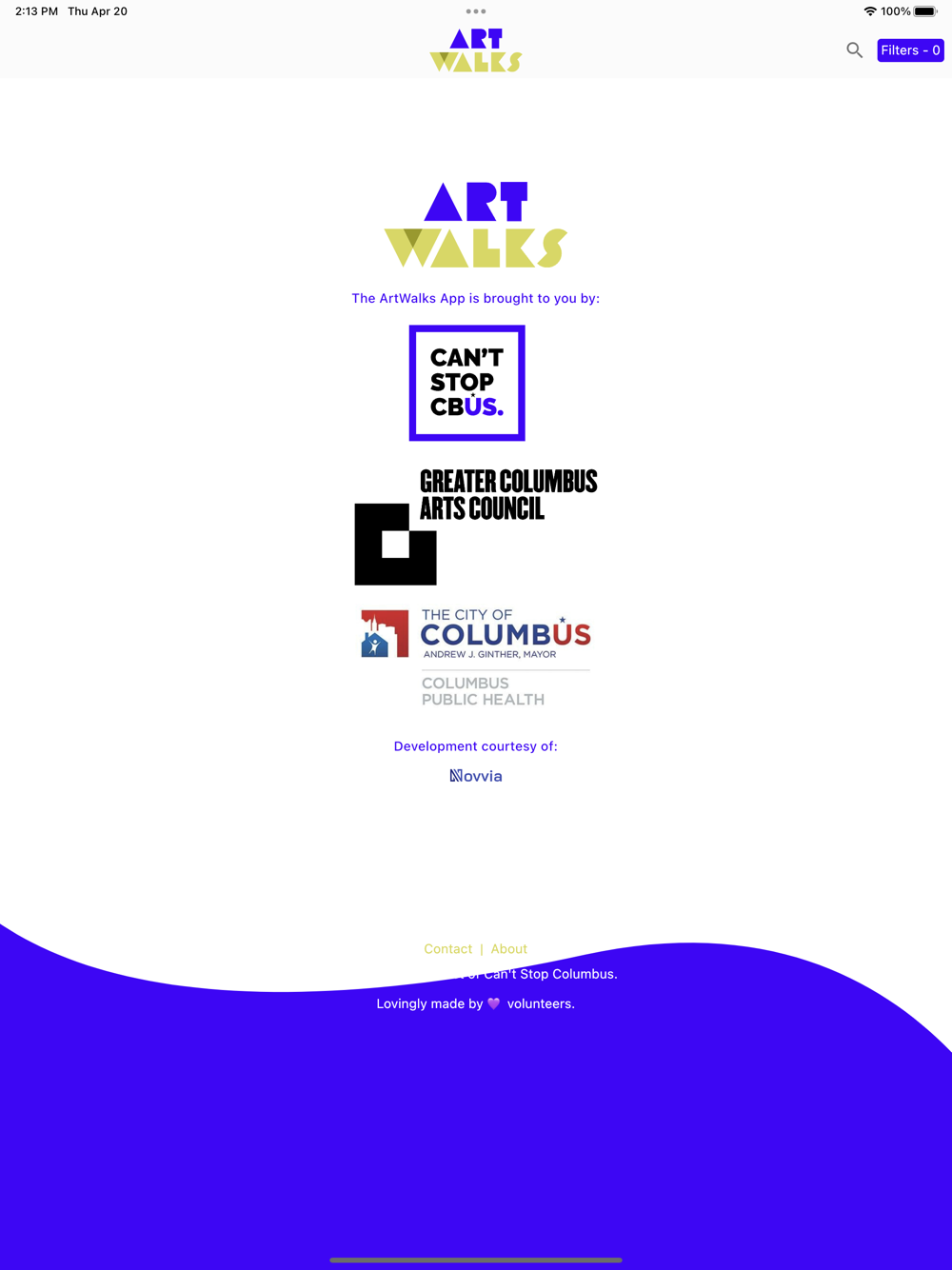 Explore Columbus, Ohio public art! The Cbus ArtWalks App will guide you to Columbus extensive collection of outdoor and indoor public art by neighborhood and allow you to search for art by title or artist name. Photos and descriptions of each of the nearly 1,000 pieces of public art in central Ohio are included, as well as links to more information where available. Don't see a favorite piece of public art in the App? Cbus ArtWalks gives you an easy way to submit the art to be added to the database. The Cbus ArtWalks app also features collections around themes. Download Cbus ArtWalks and explore Columbus and its neighborhoods through public art today!
